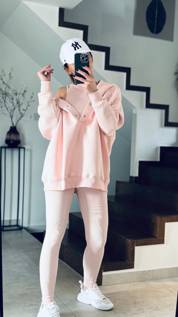 Komplet dresowy Cotts Jasny Róż 3 częściowy bluza ocieplane z napami , legginsy prążek oraz top