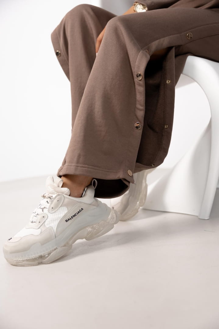 Komplet Zuma to zestawienie dla kobiet ceniących sobie swobodę oaz ekstrawagancję .Dopasowany top  z prążkowanej elastycznej bawełny z elastanem ze złotymi guziczkami na ramionach , dodaje szerokim spodniom z wysokim stanem sexapilu . Spodnie dresowe z wewnętrznymi kieszeniami , do kolan z rozpinamymi napami w kolorze złotym .
