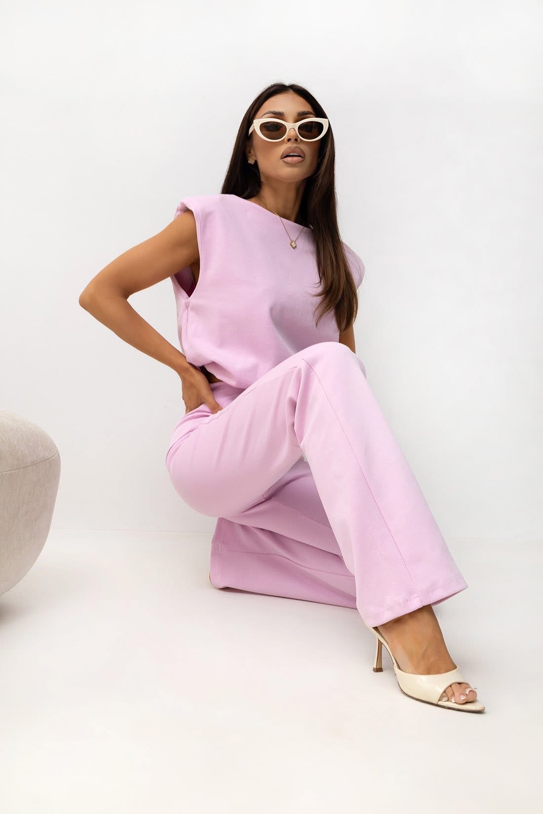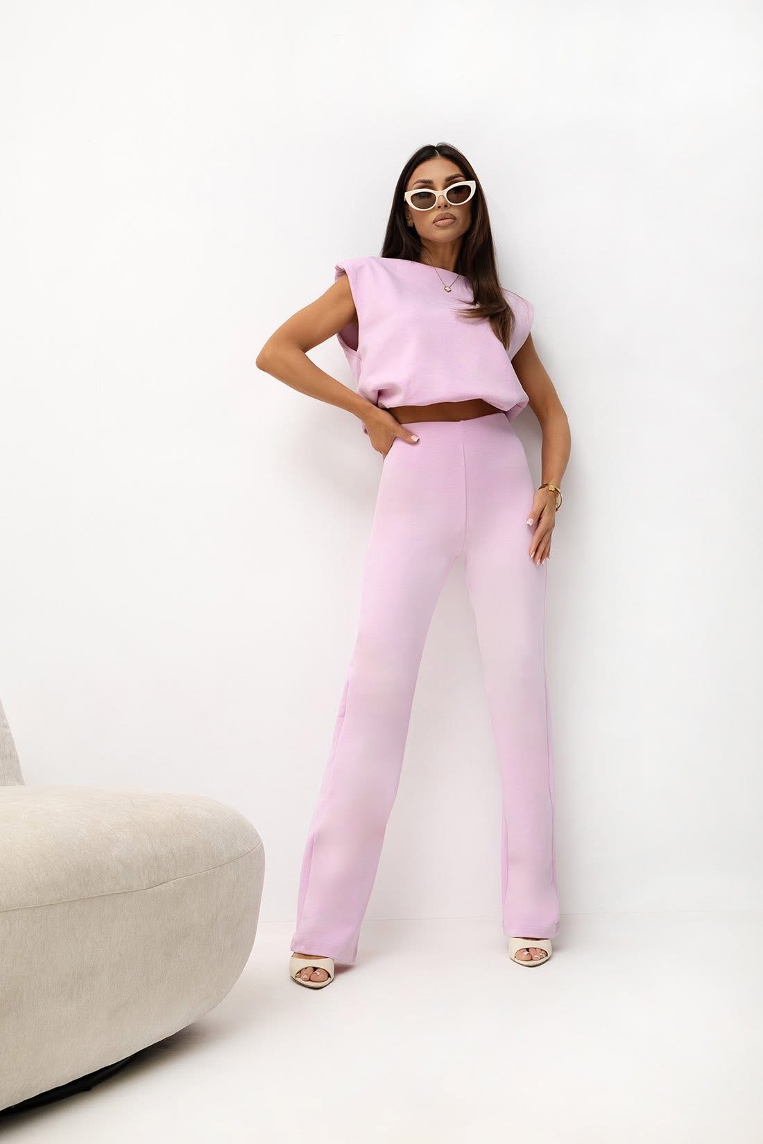 Dres damski 2 częściowy spodnie dresowe prosta nogawka top Liliowy