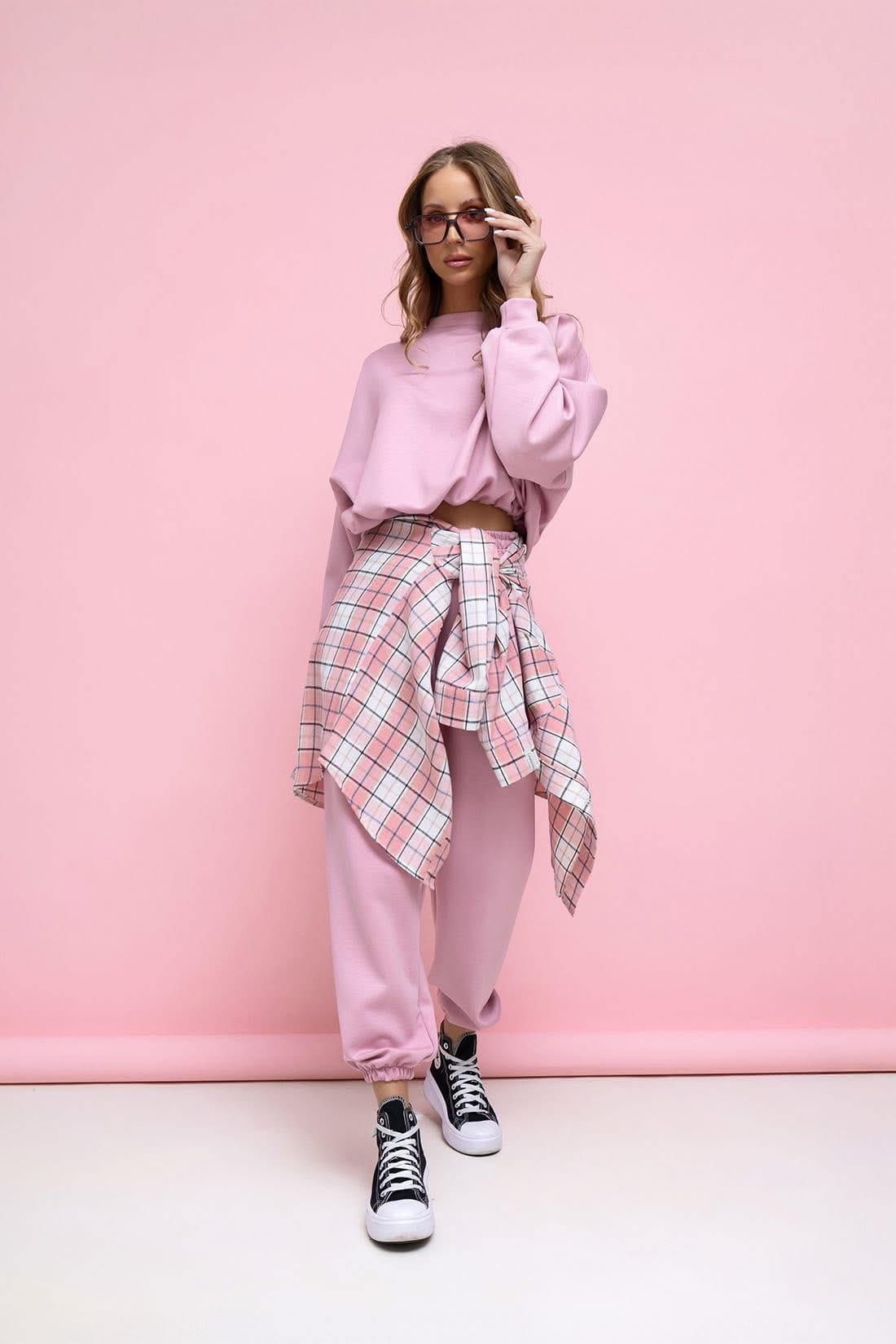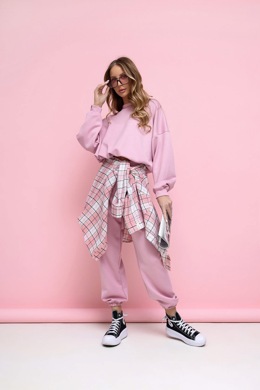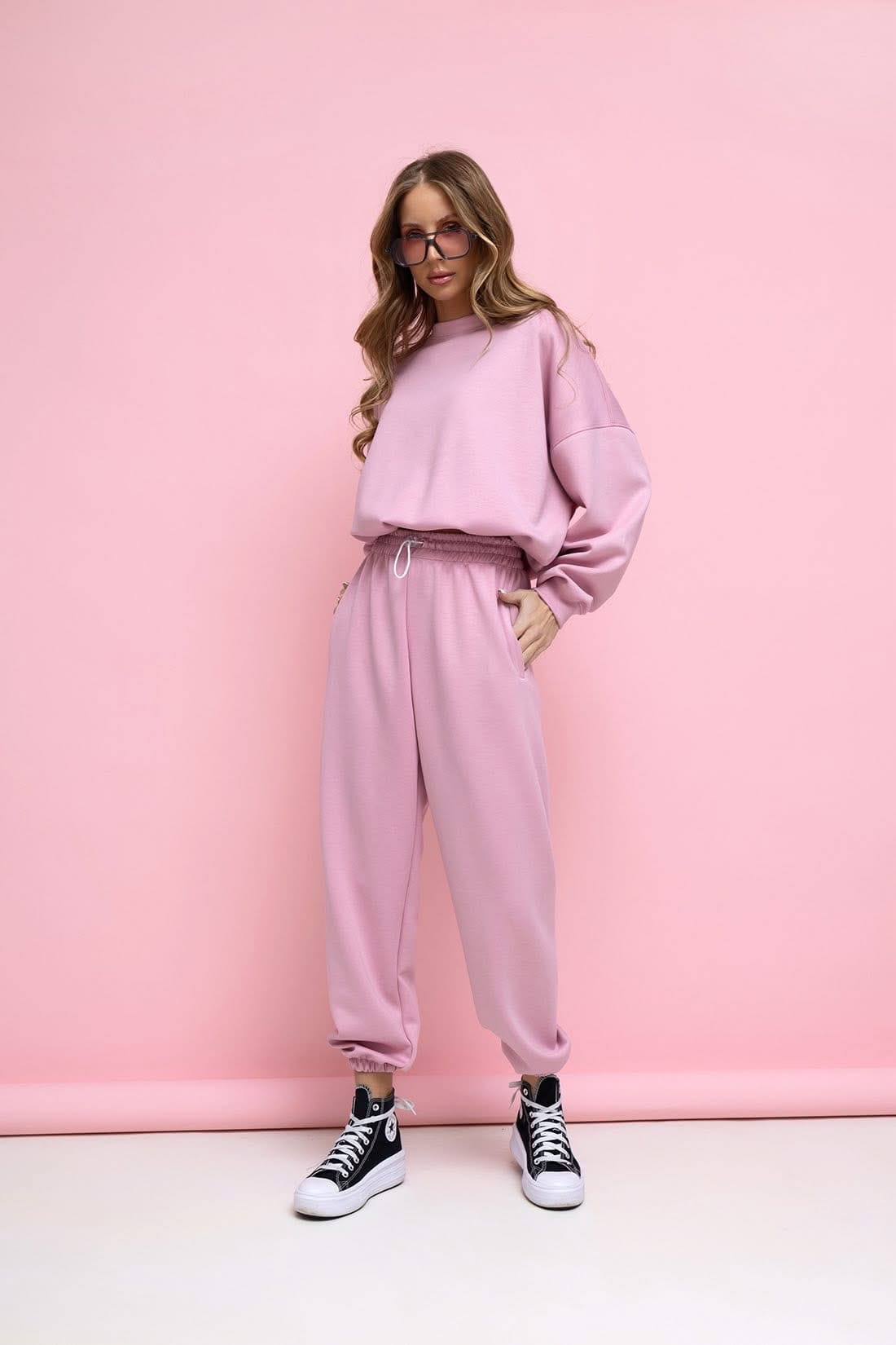 Komplet Wera spodnie dresowe z wysokim stanem oraz bluza z ze ściągaczem w rozmiarze oversize. Bluza typu Basic posiada regulowany troczek . Komplet masełkiem , mięciutki i bardzo przyjemny .