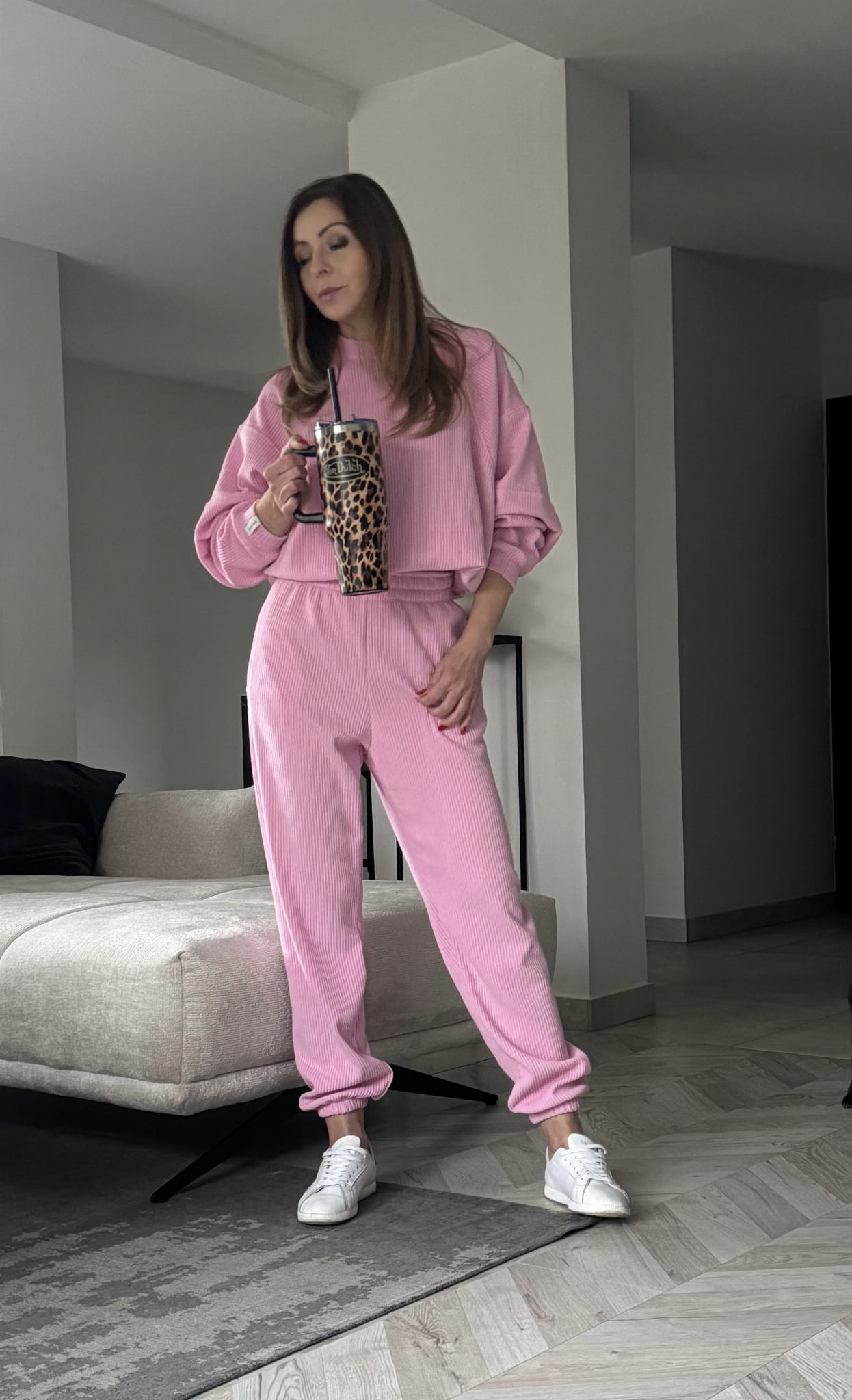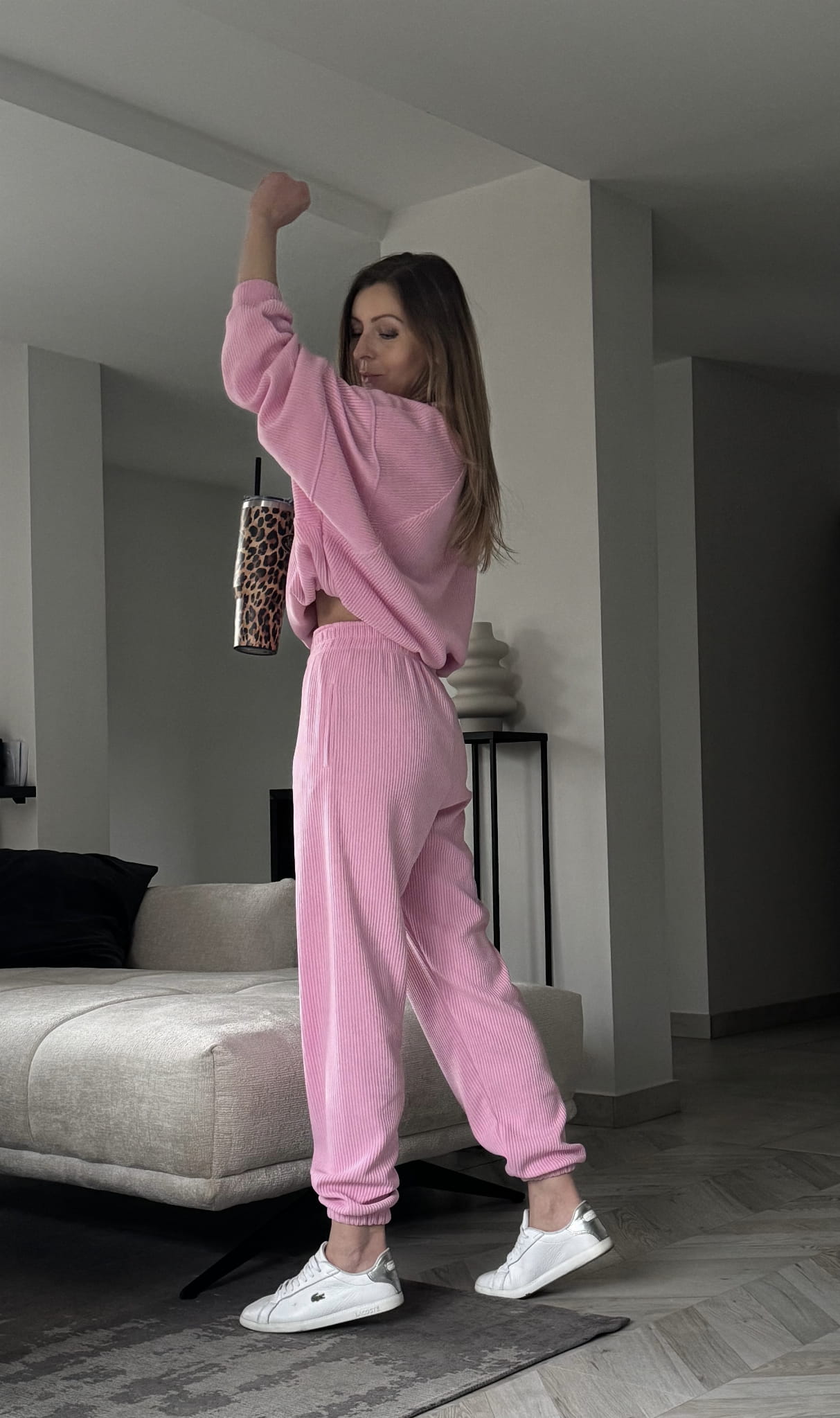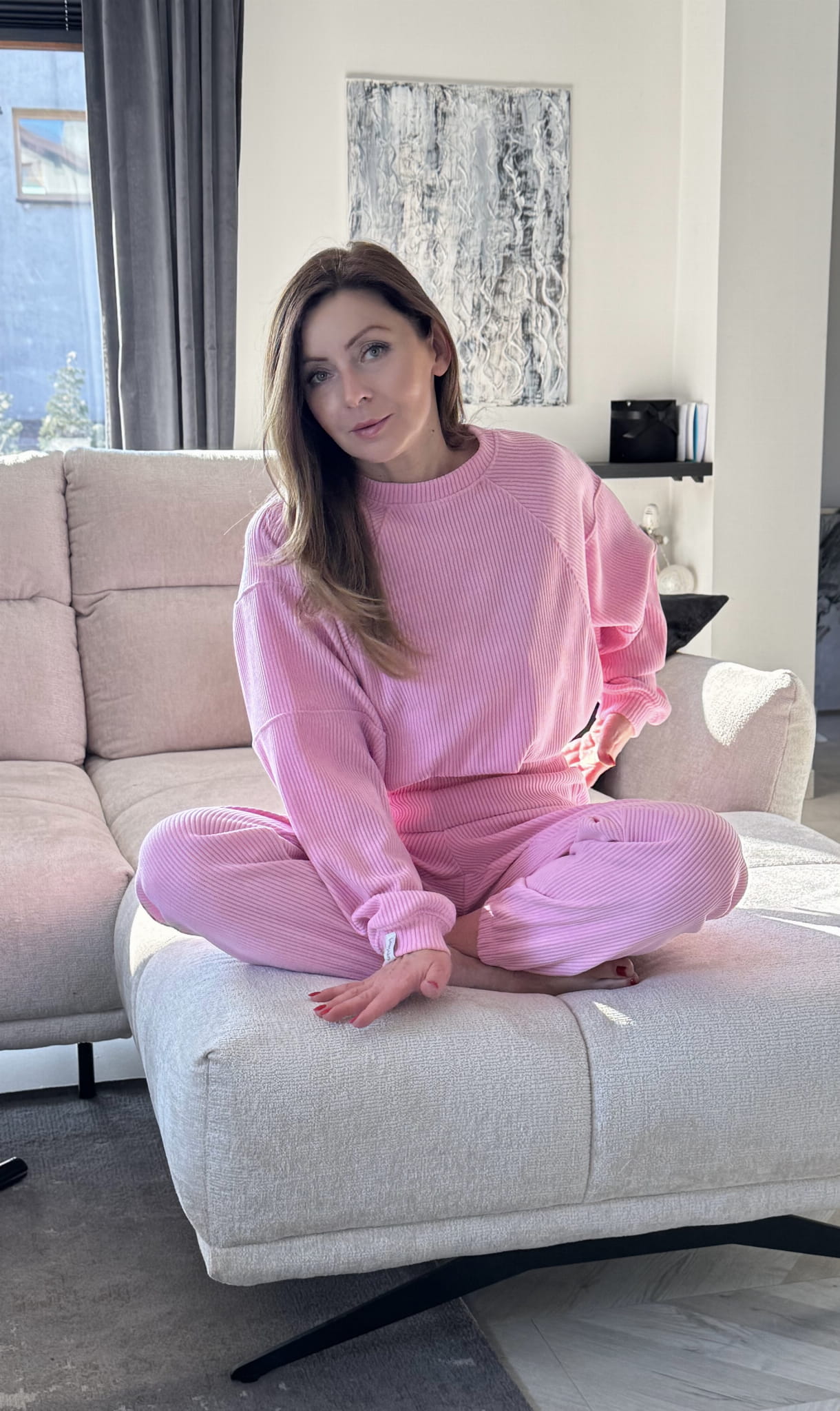 Komplet Wera sztruksowy Lenoshka Barbi Róż szerszy prążek