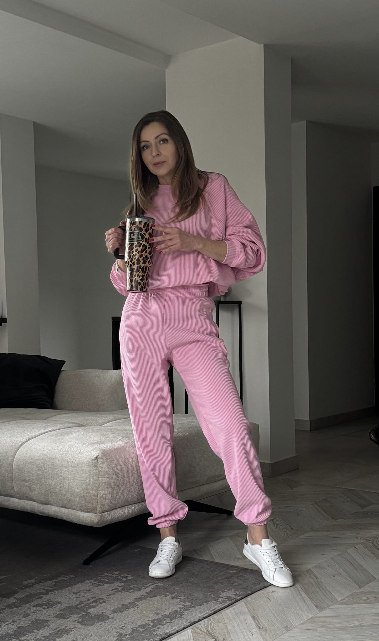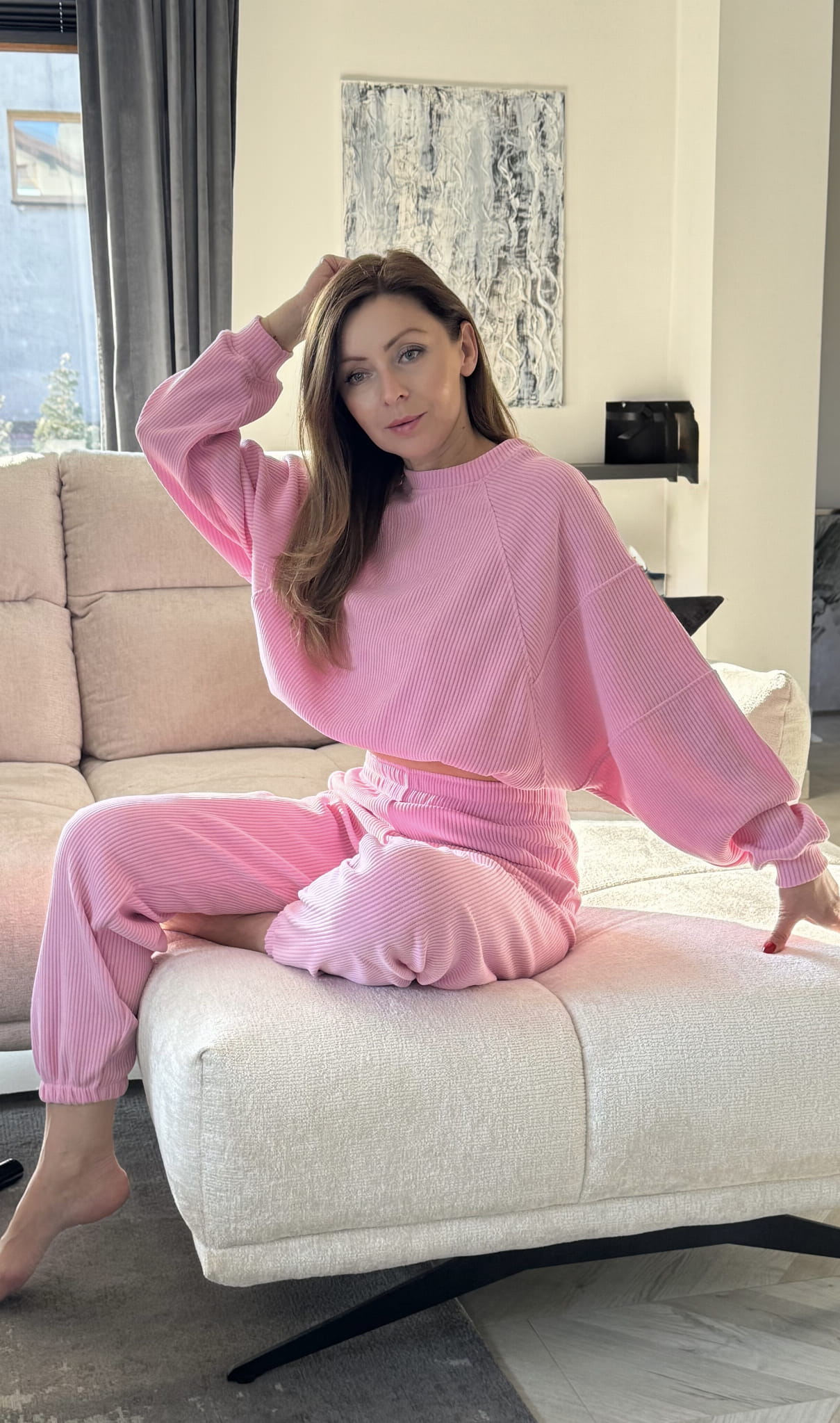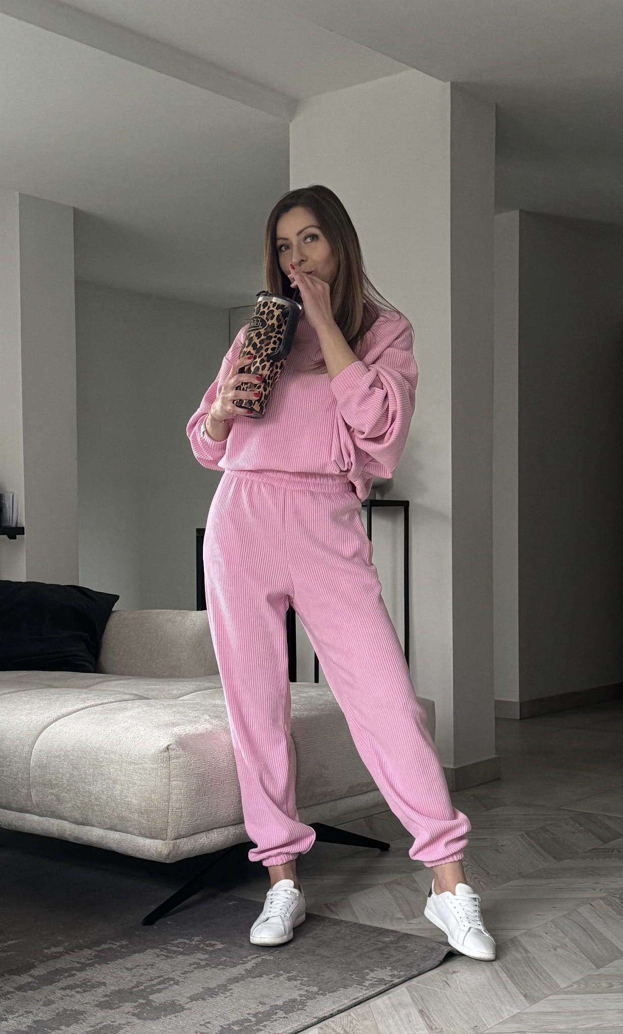 Komplet Wera sztruksowy Lenoshka Barbi Róż szerszy prążek
