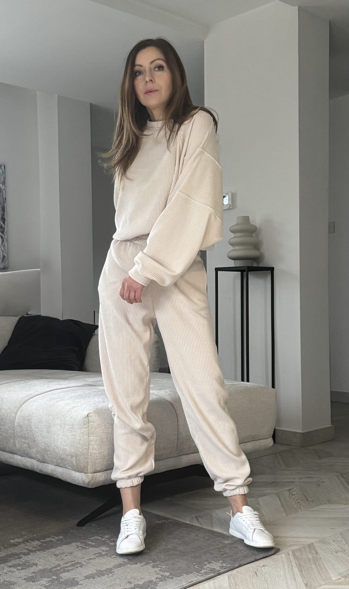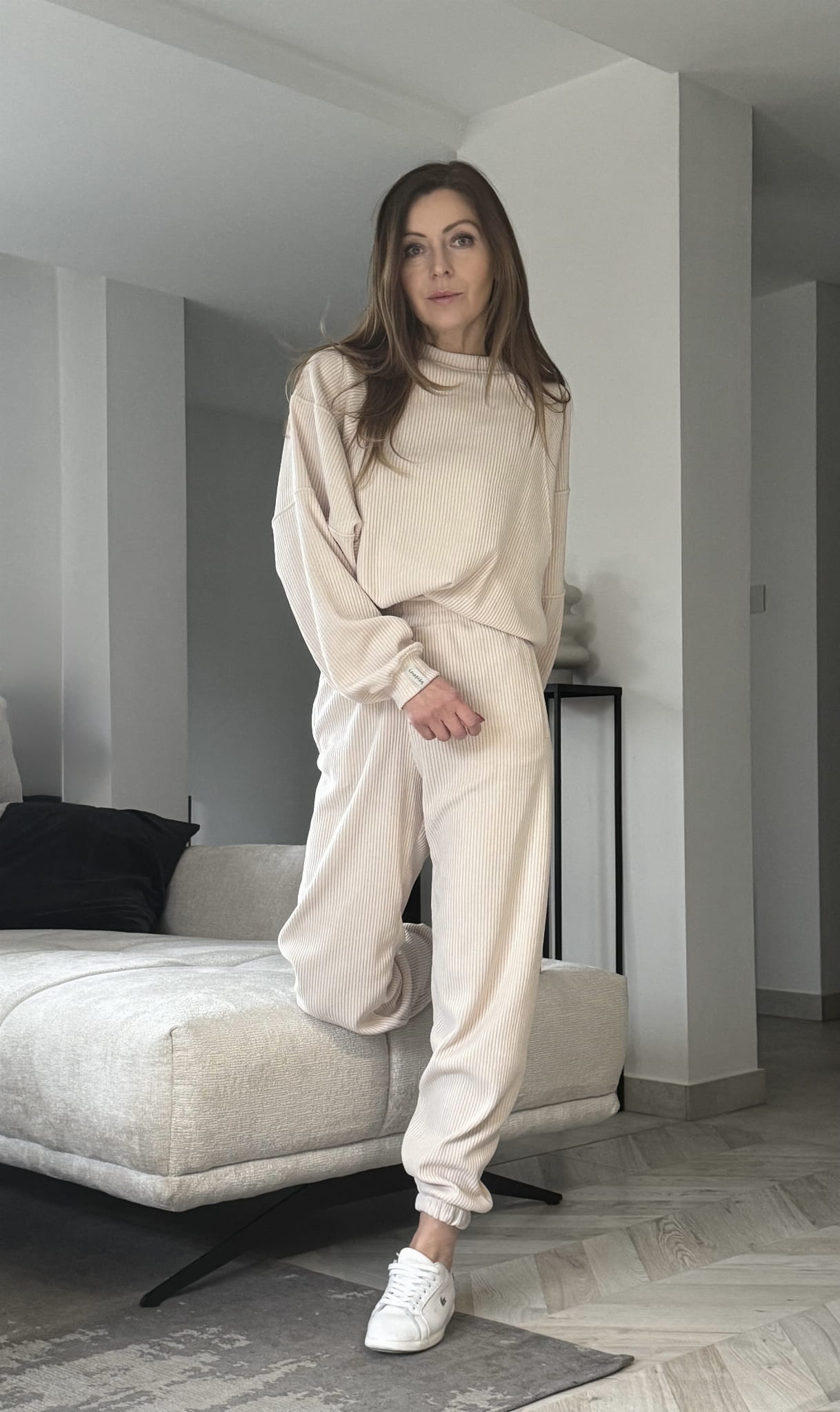 Komplet Wera sztruksowy Lenoshka Jasny beż szerszy prążek