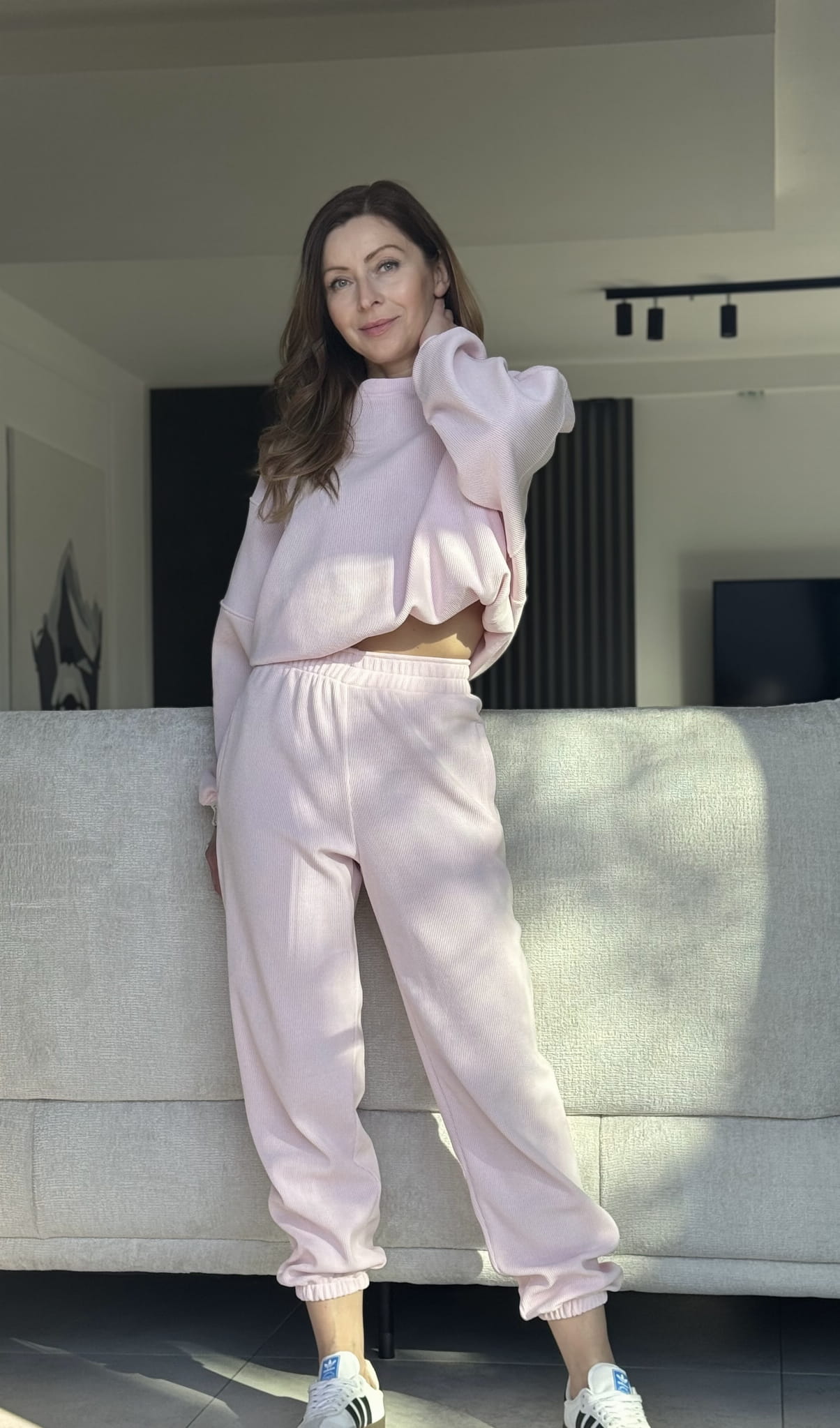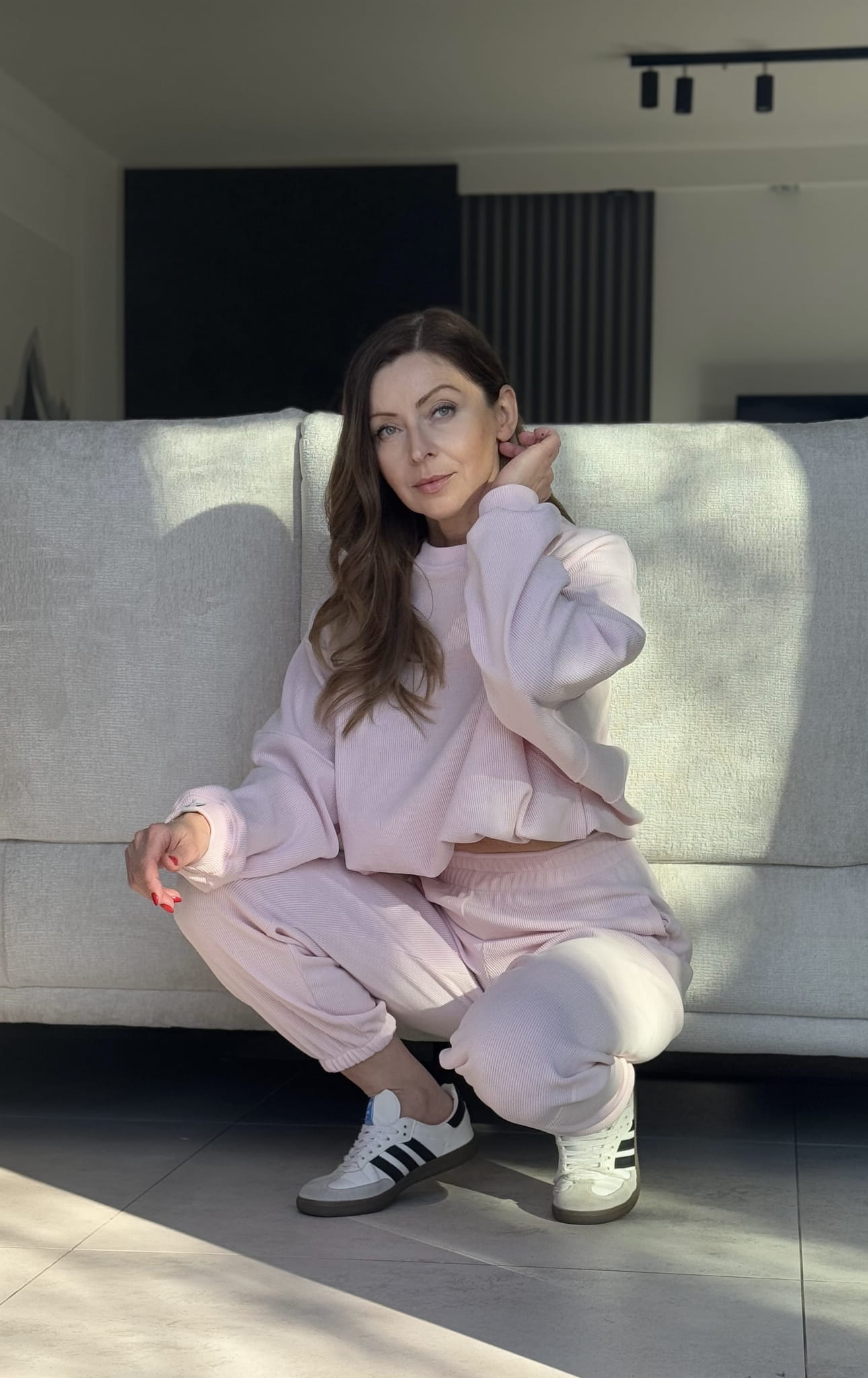 Komplet Wera sztruksowy Lenoshka jasny róż węższy prążek
