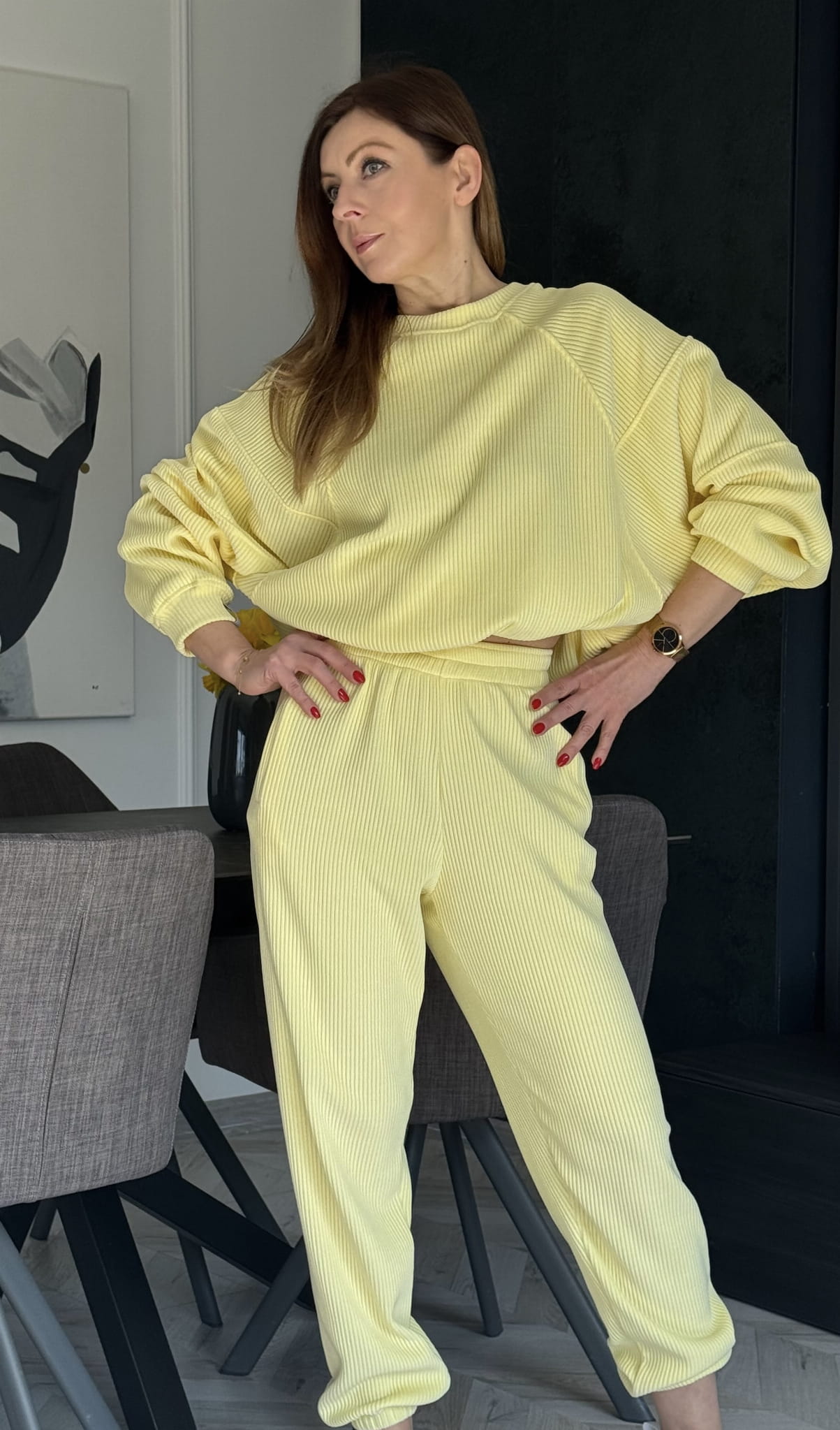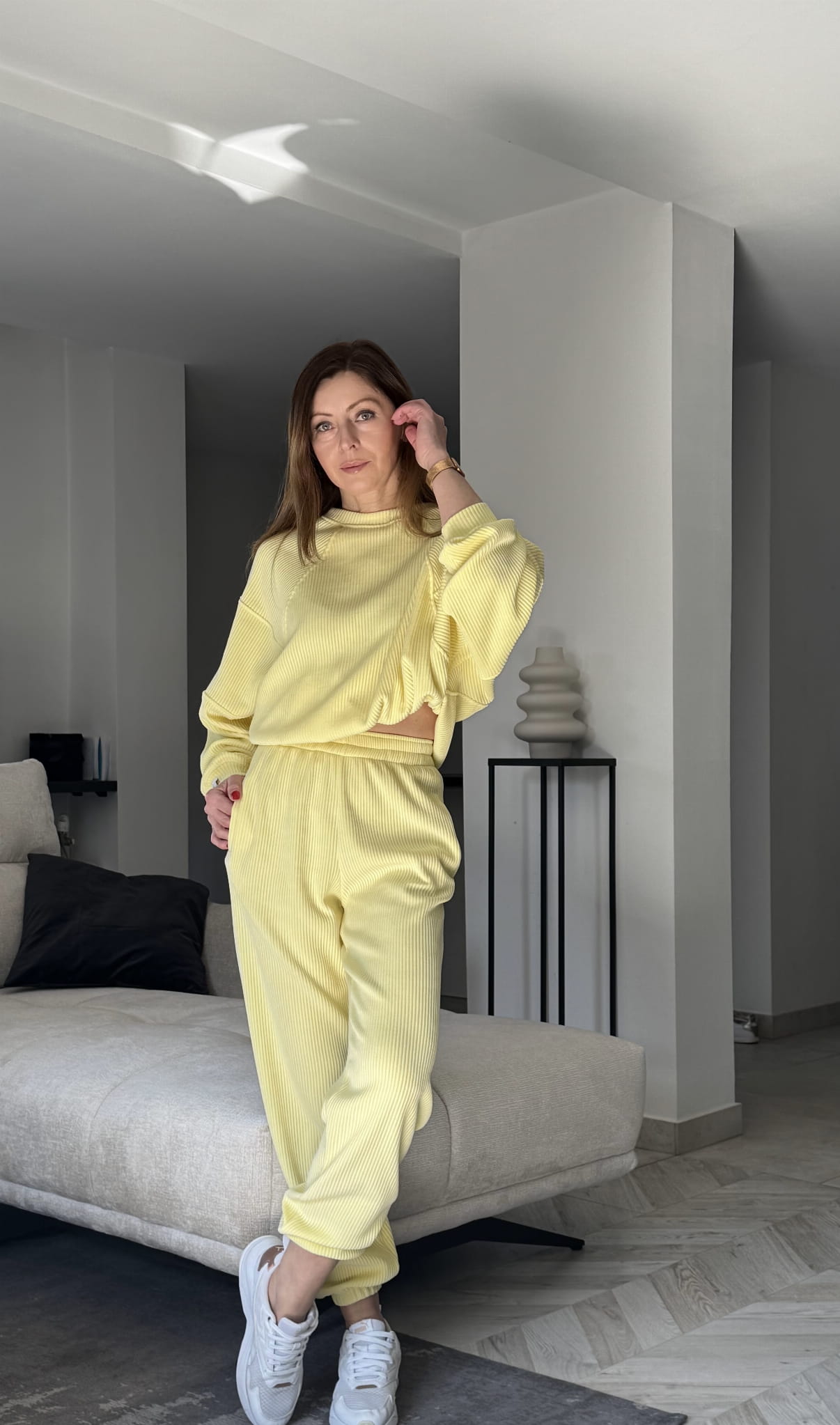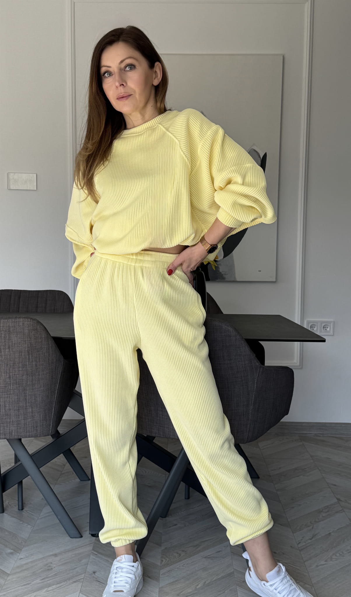 Komplet Wera sztruksowy Lenoshka szerszy prążek Cytrynowy