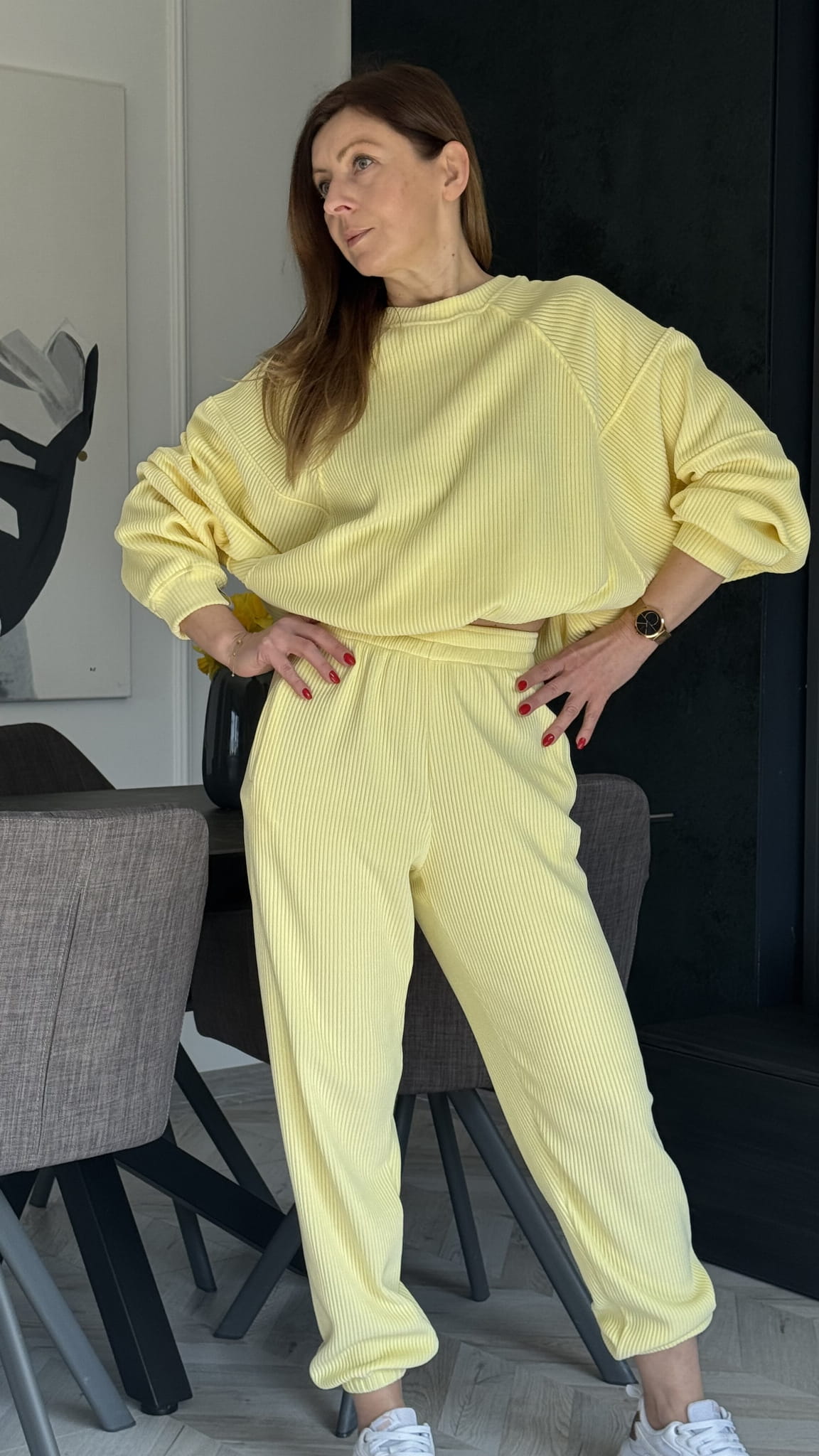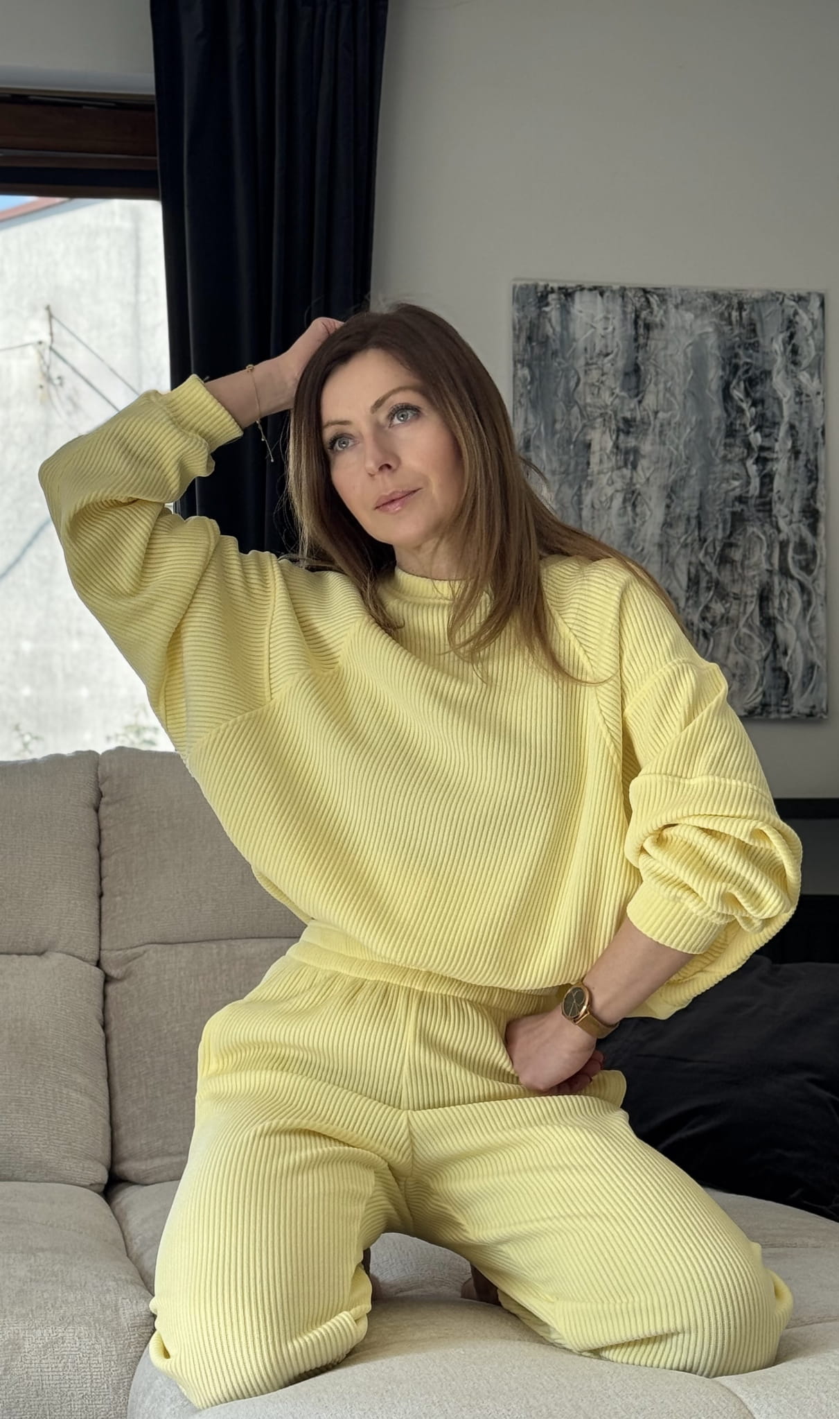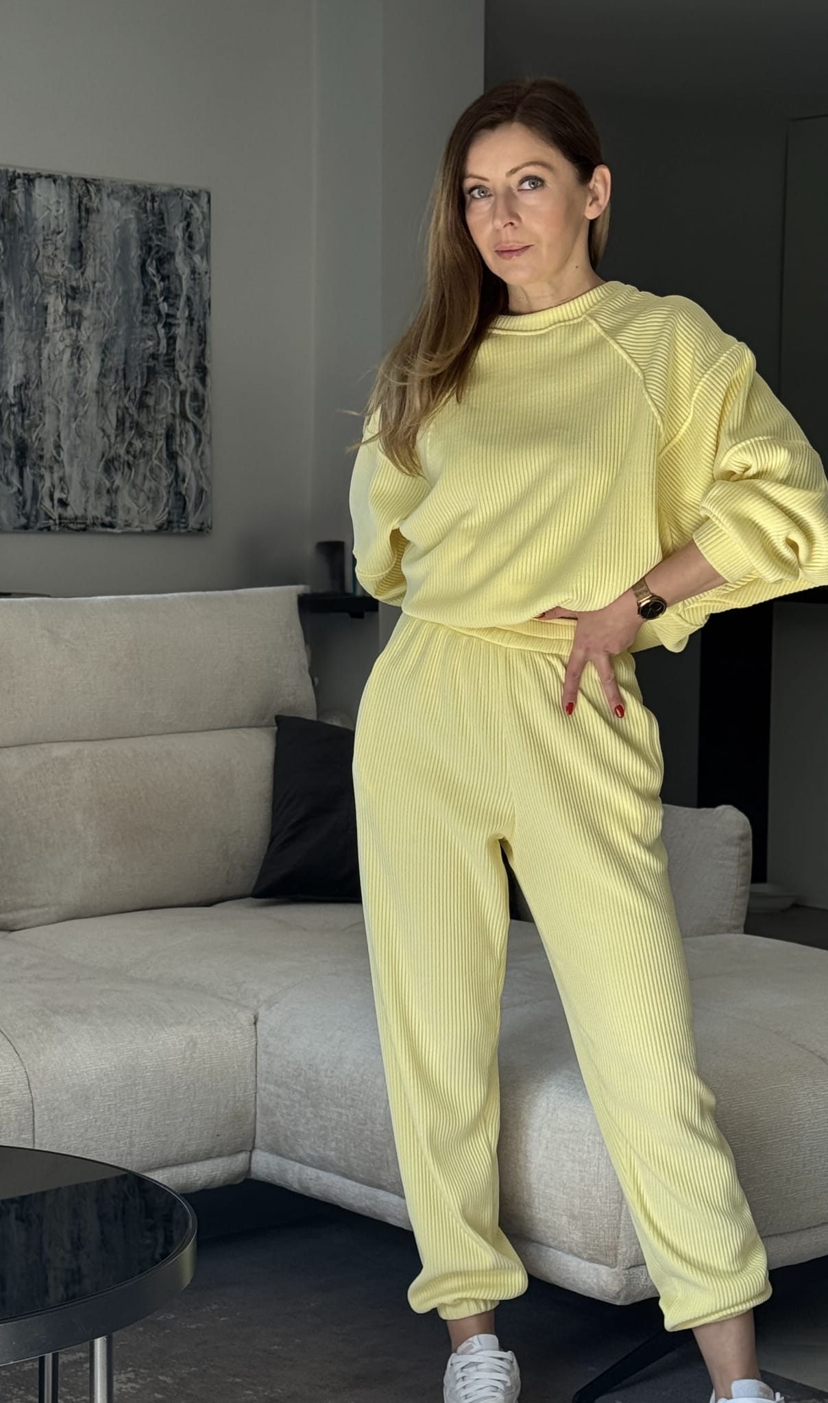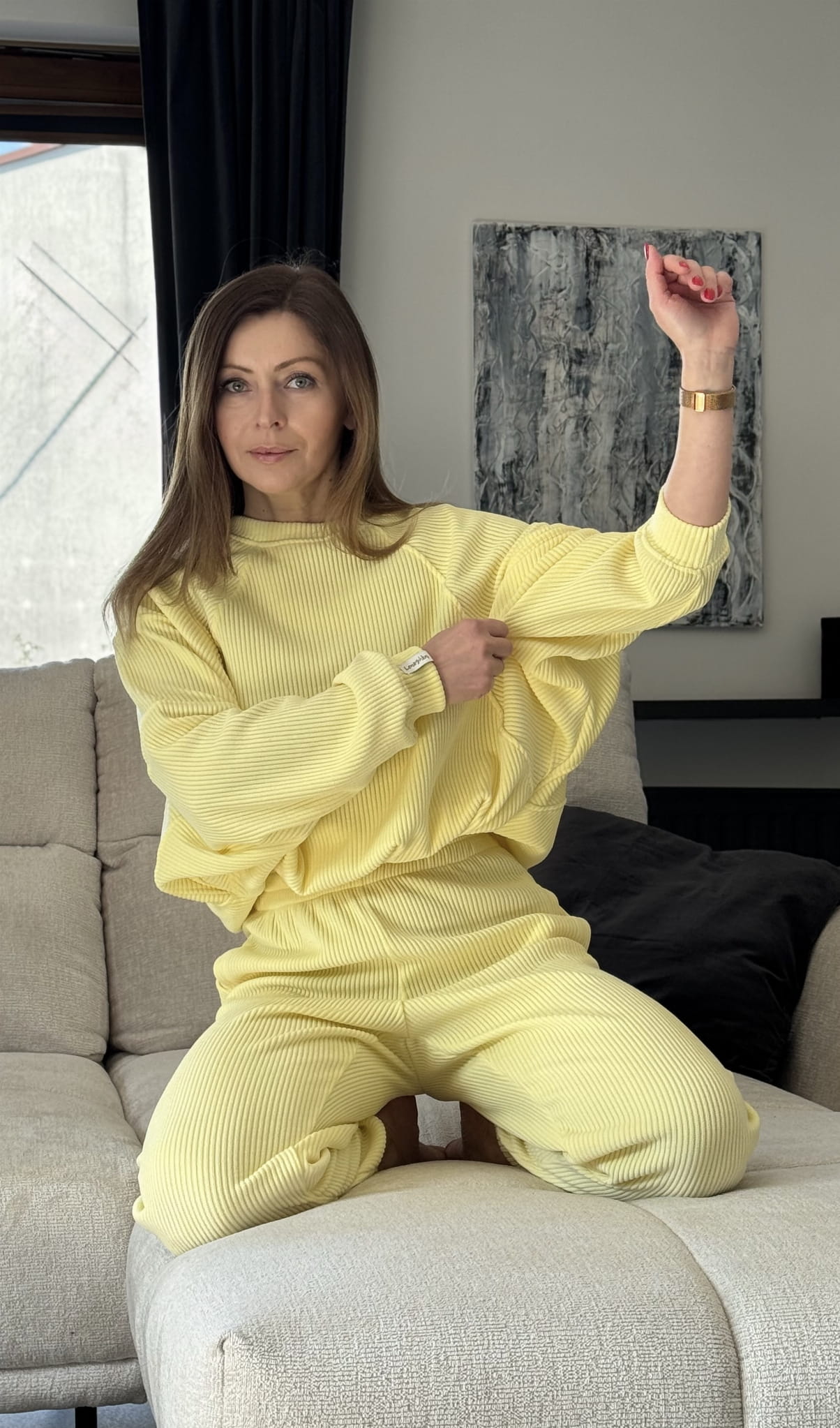Komplet Wera sztruksowy Lenoshka szerszy prążek Cytrynowy