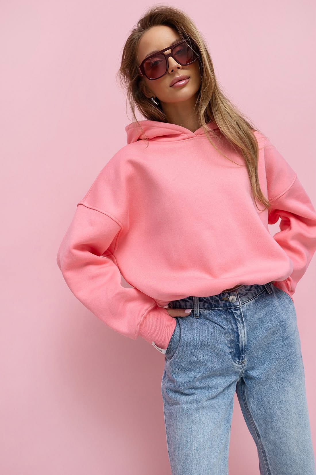Bluza Mila ocieplana kaptur Lenoshka Róż koralowy
