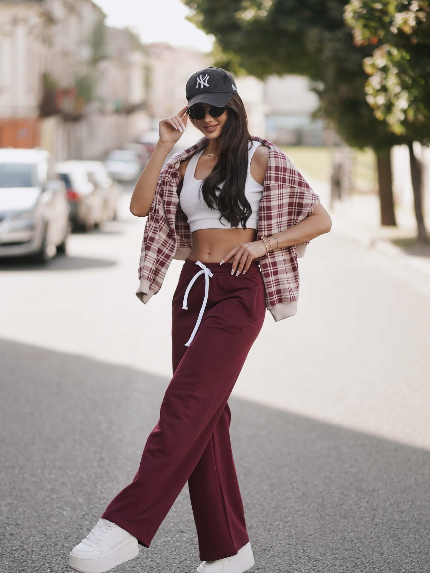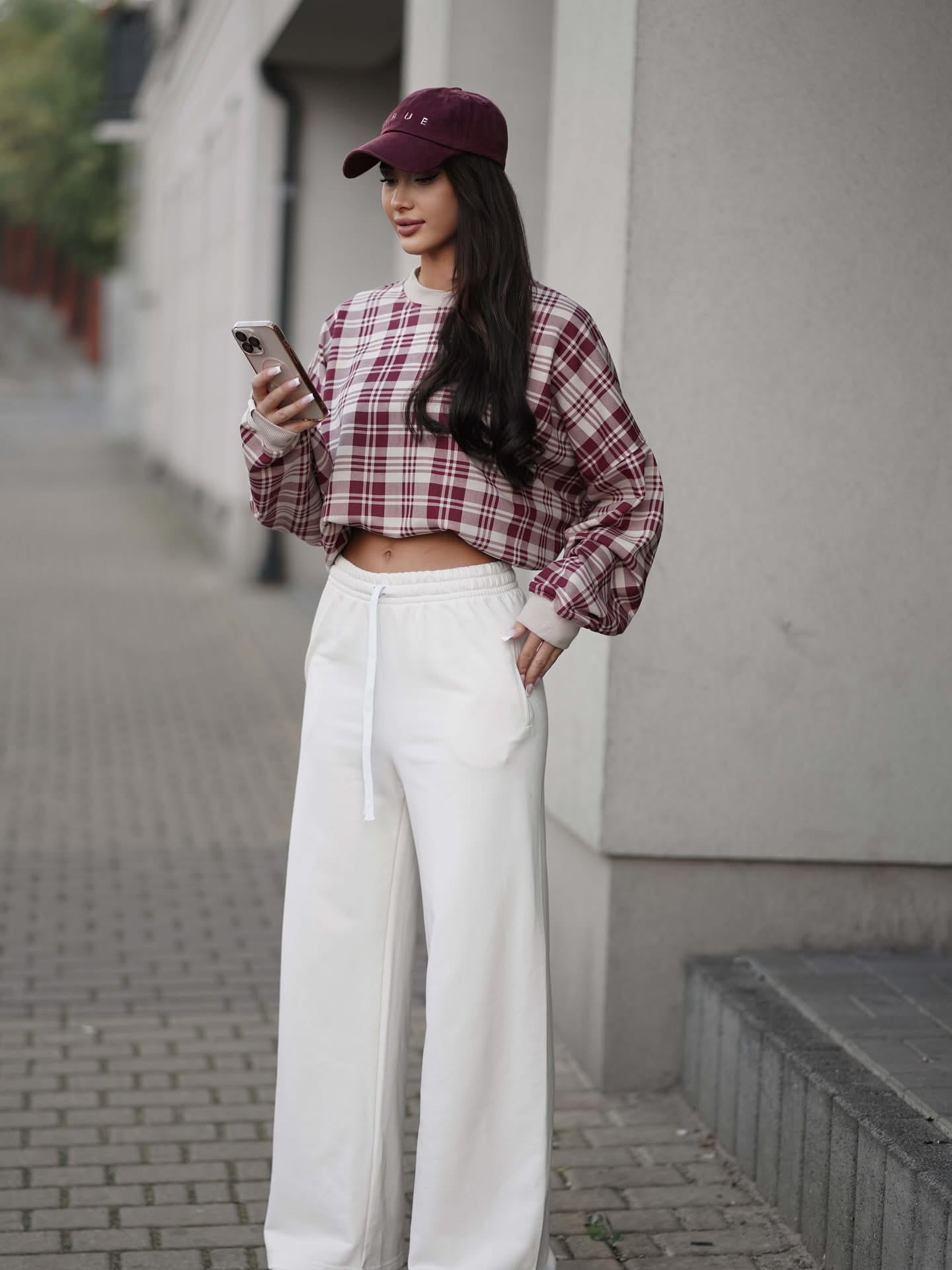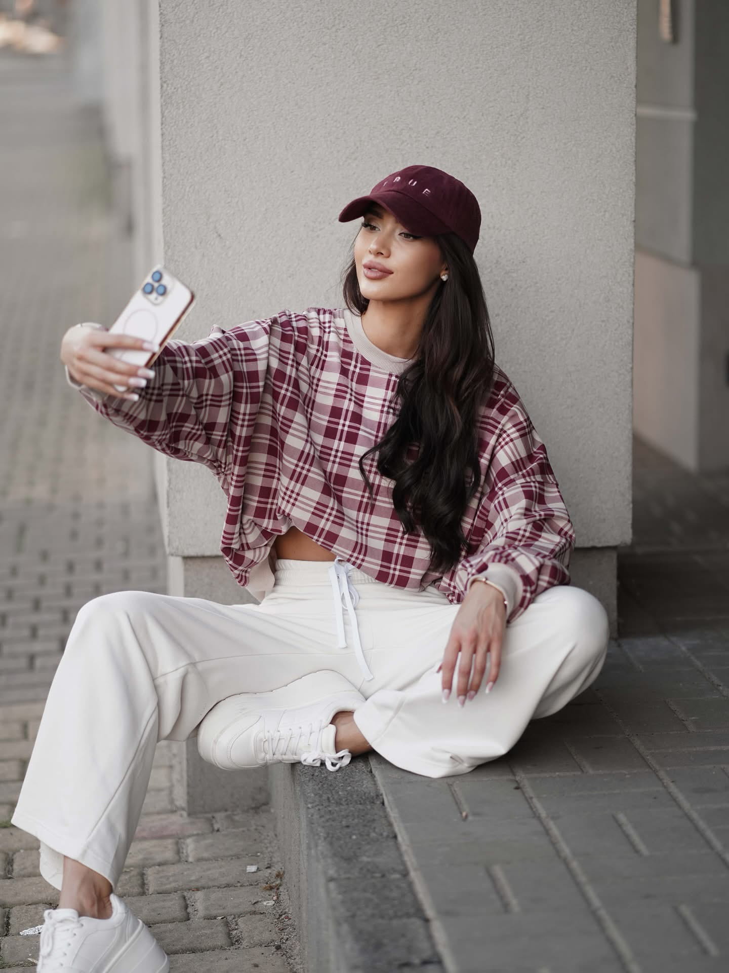 Bluza dresowa oversize Basic Bordo krata Lenoshka