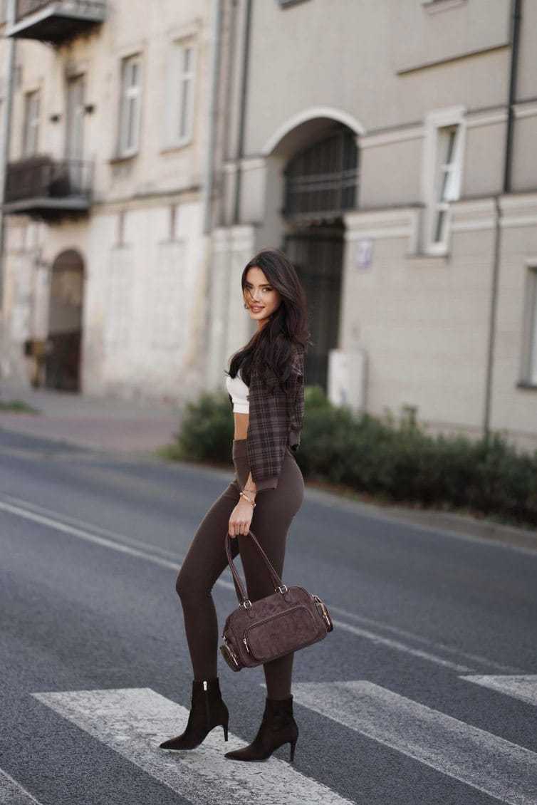Nowość komplet bluza Basic legginsy push up Czekoladowy Lenoshka Krata