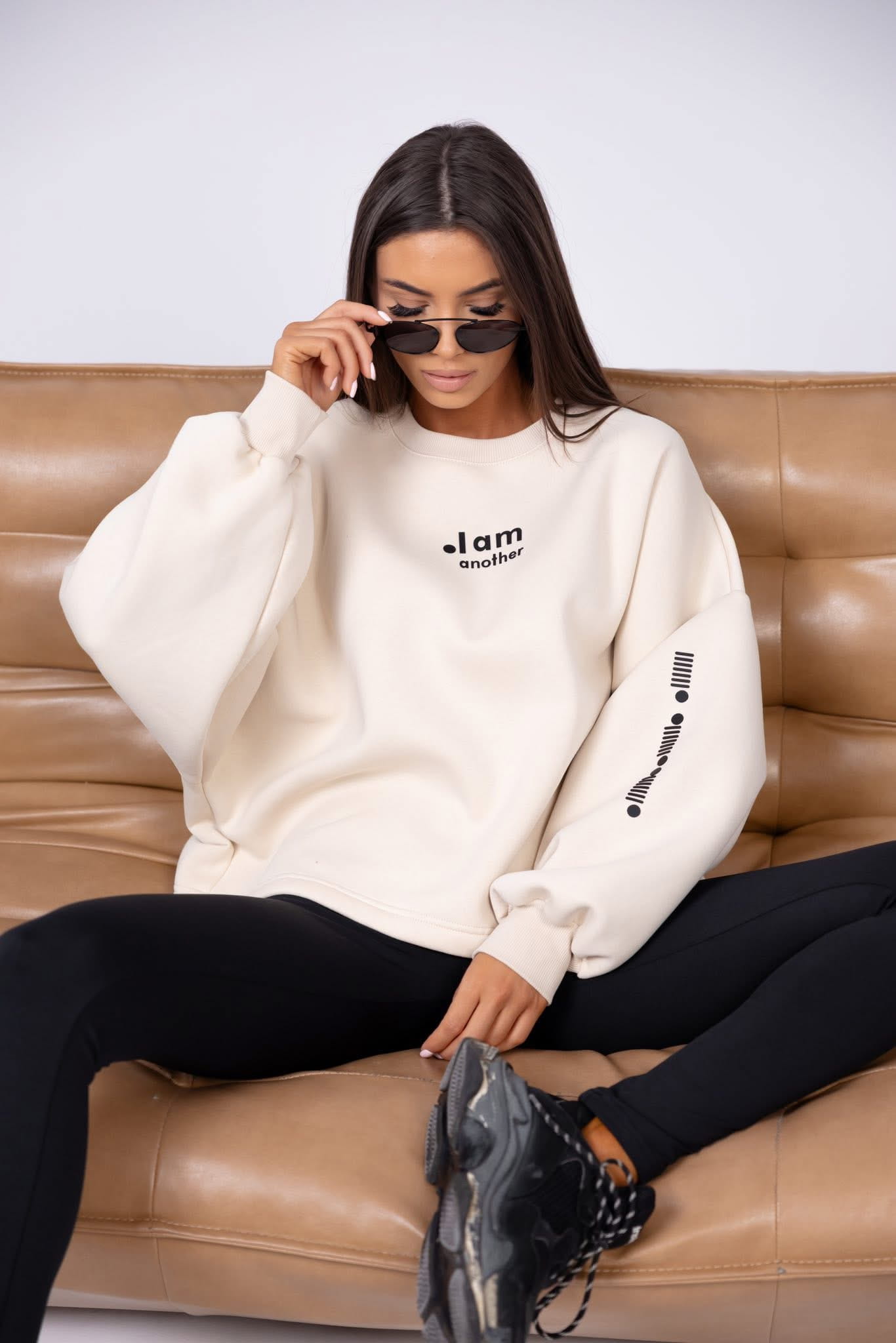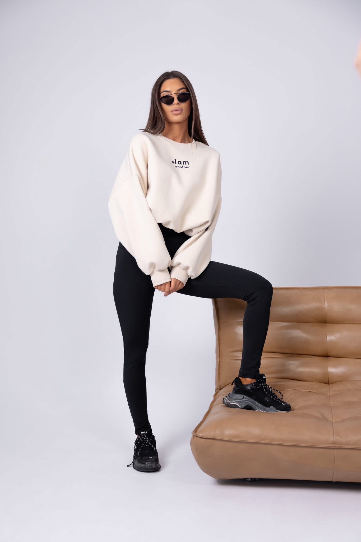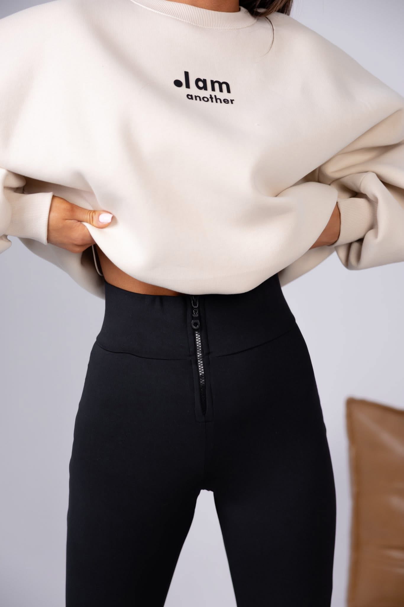 Dres 2 częściowy Bluza ocieplana z legginsami z wysokim stanem Another Beż