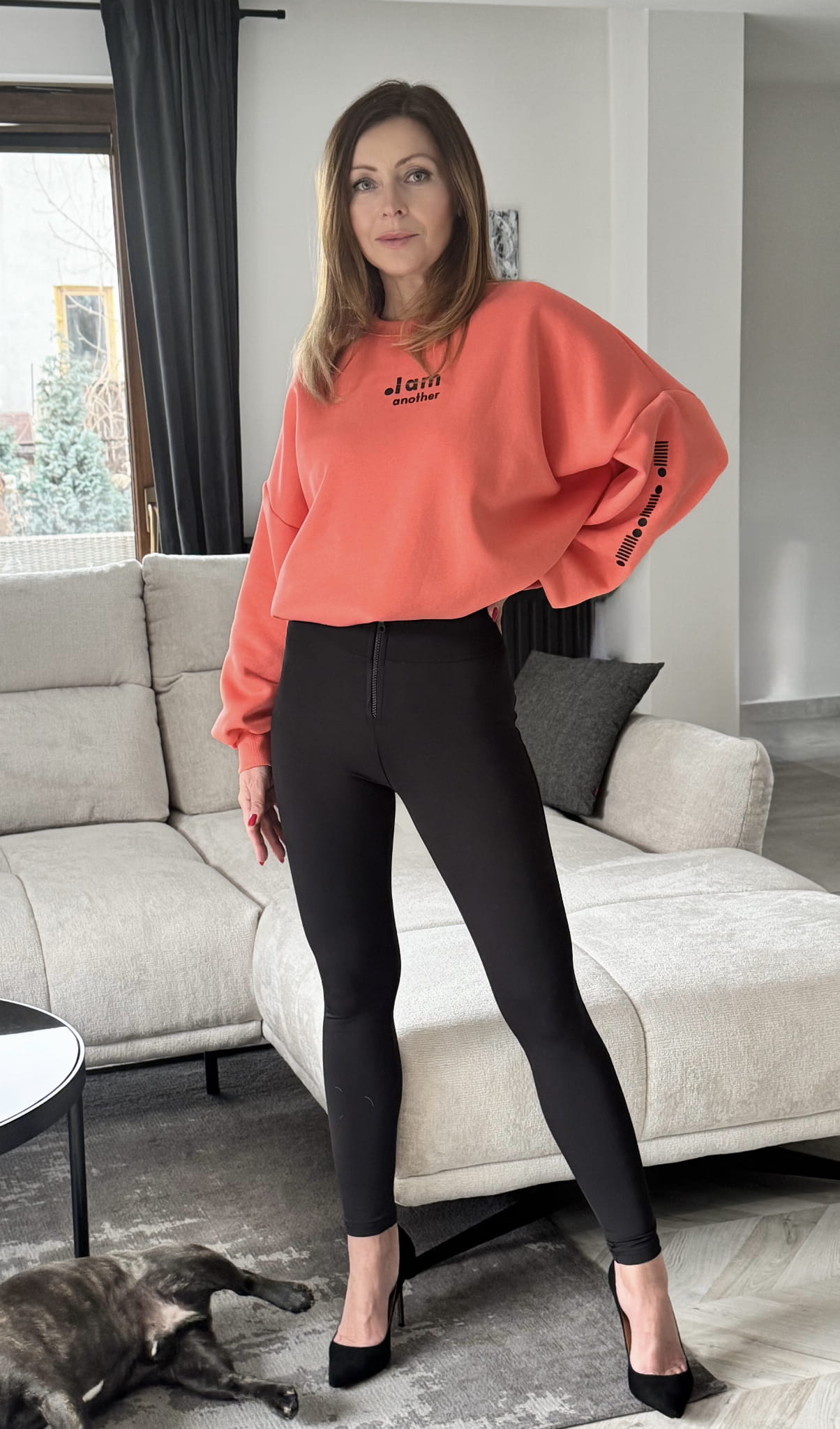 Dres 2 częściowy Bluza ocieplana z legginsami z wysokim stanem Another Koralowy