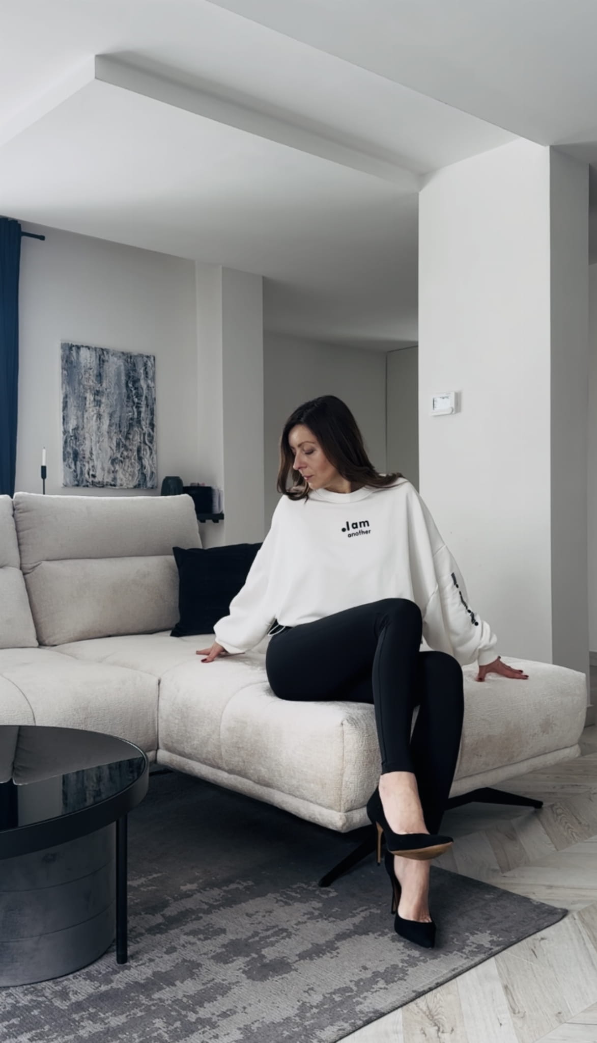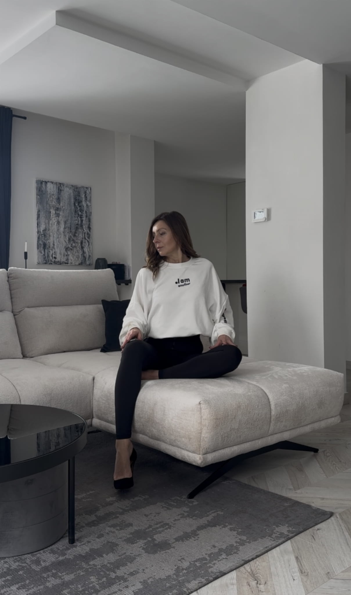 Dres 2 częściowy Bluza ocieplana z legginsami z wysokim stanem Another Śmietankowy