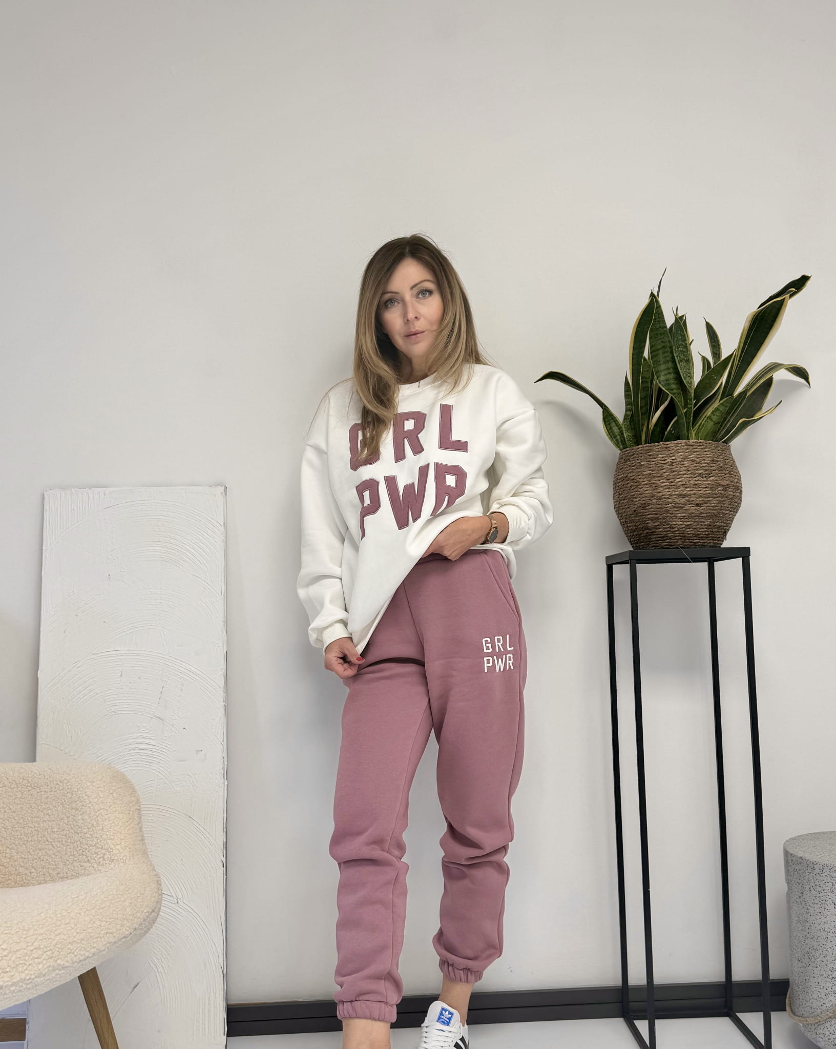 Dres 2 częściowy ocieplany , bluza spodnie dresowe GRL Biało Jagodowy