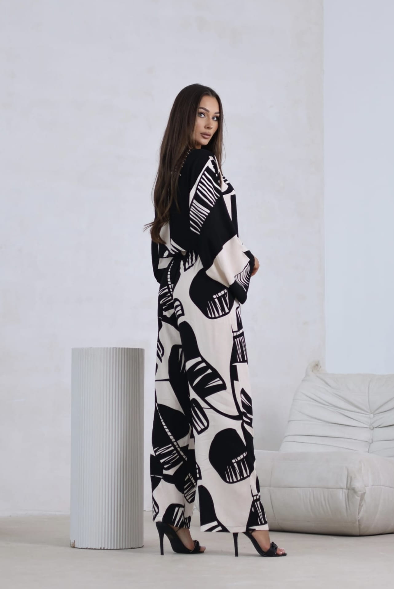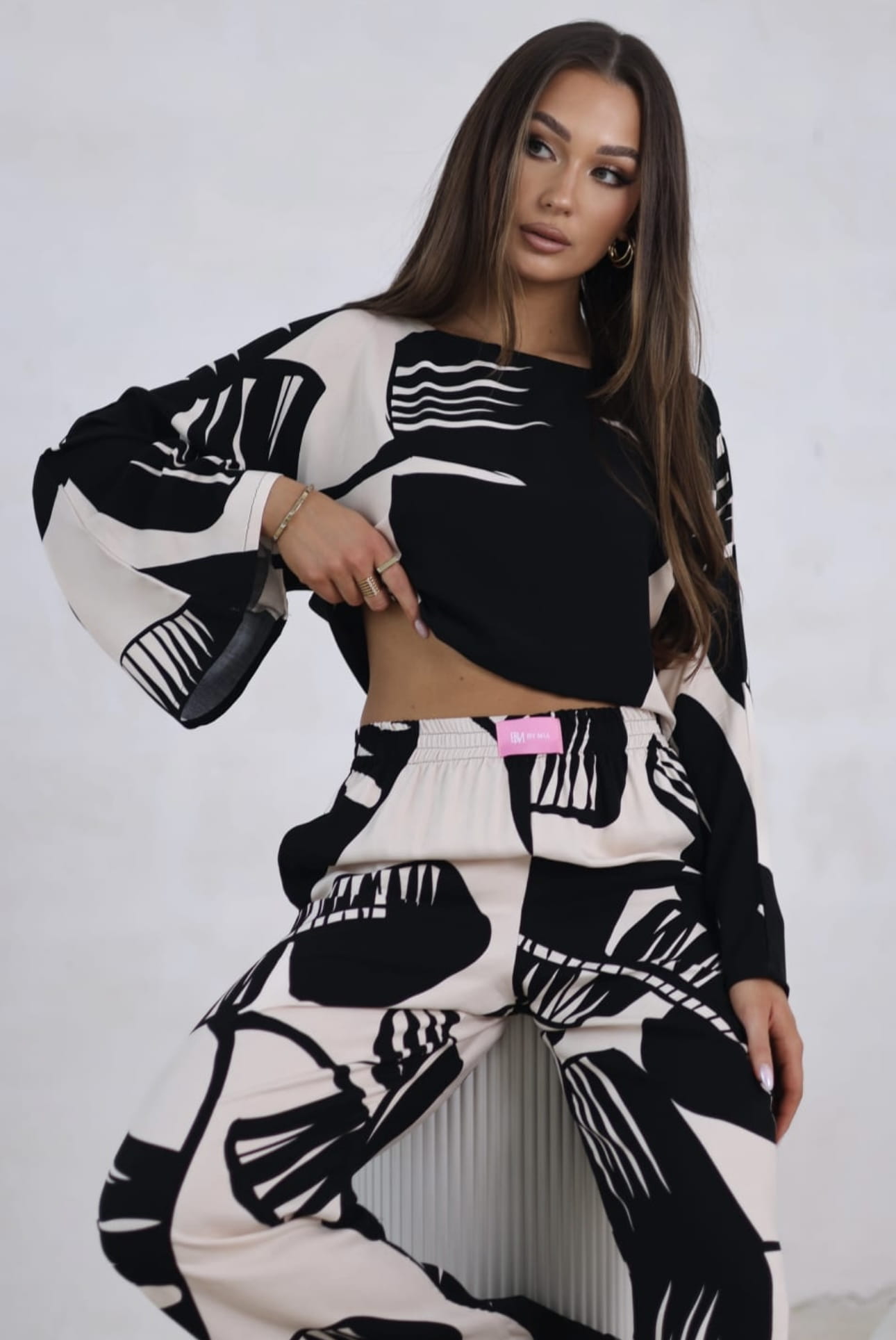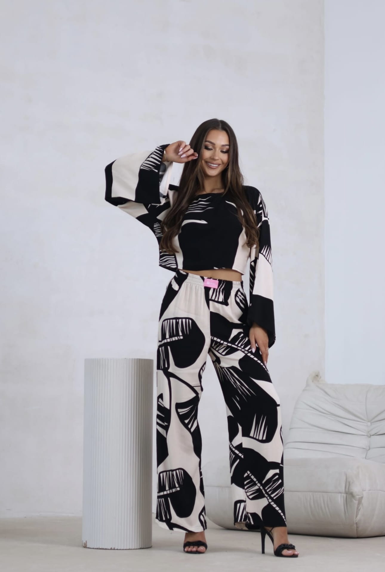 Elegancki komplet 2 częściowy Boho Beżowo - Czarny Print