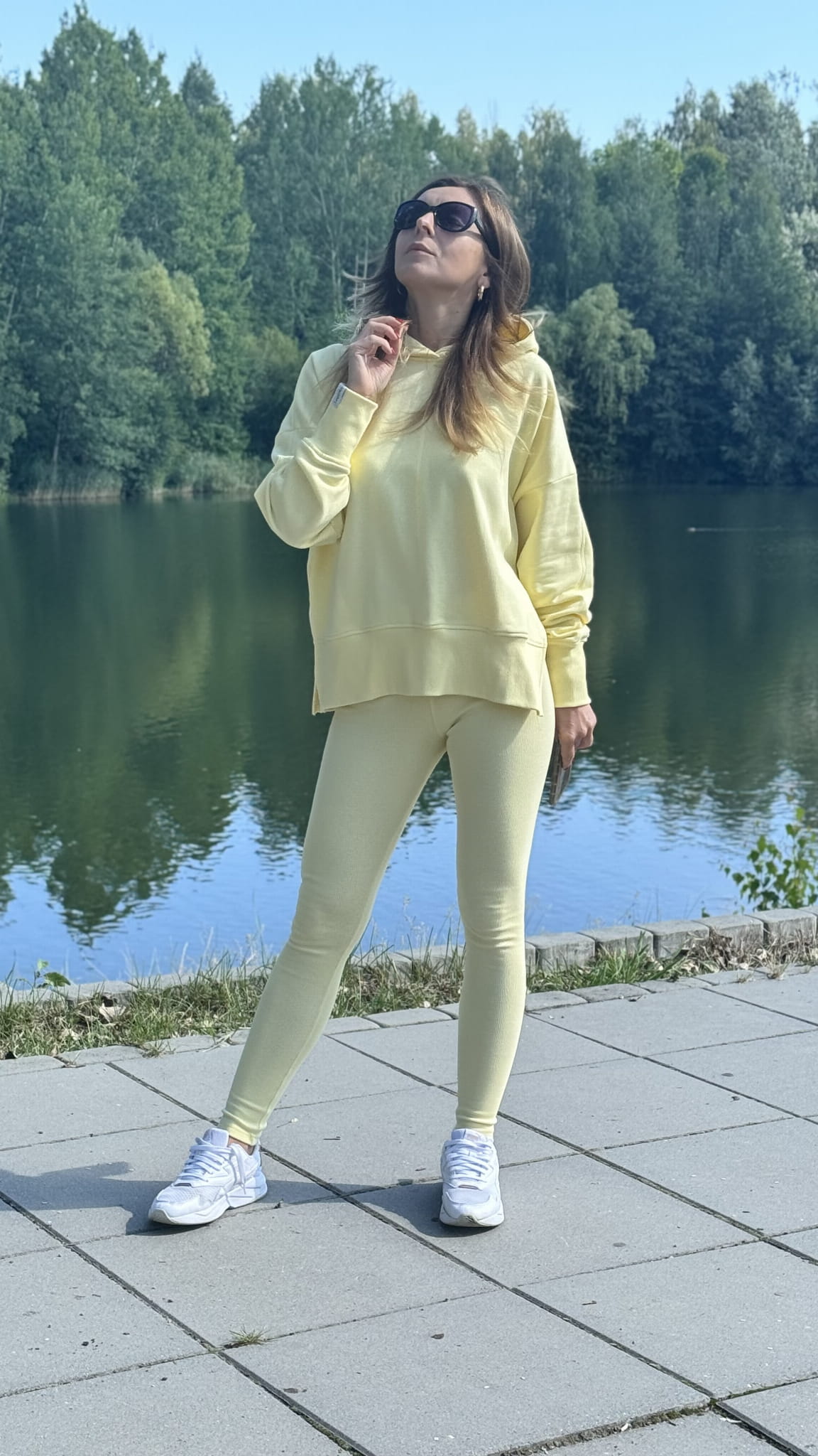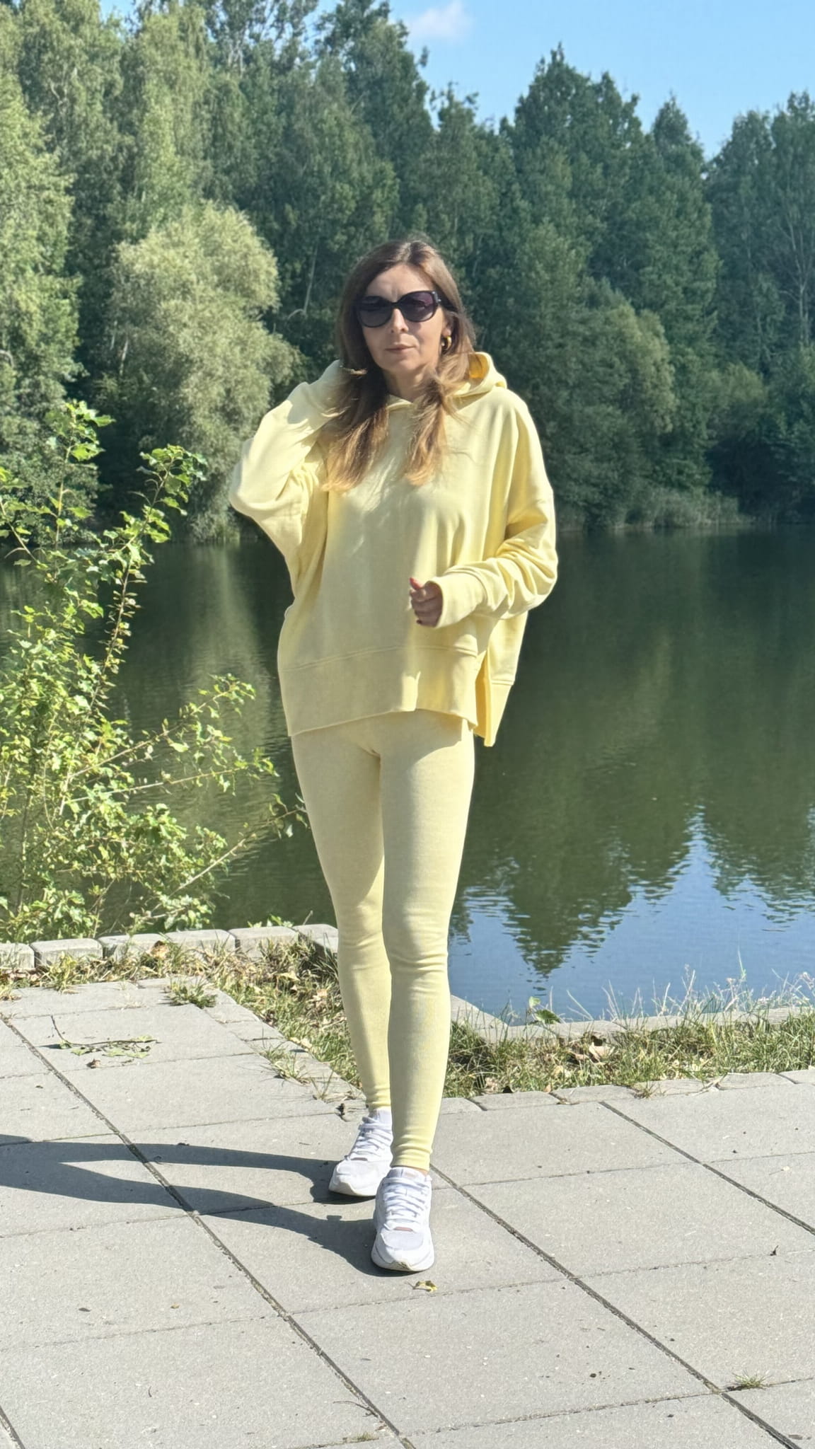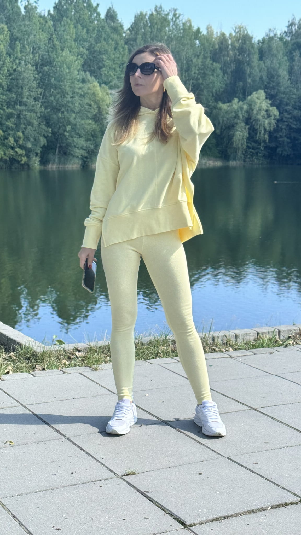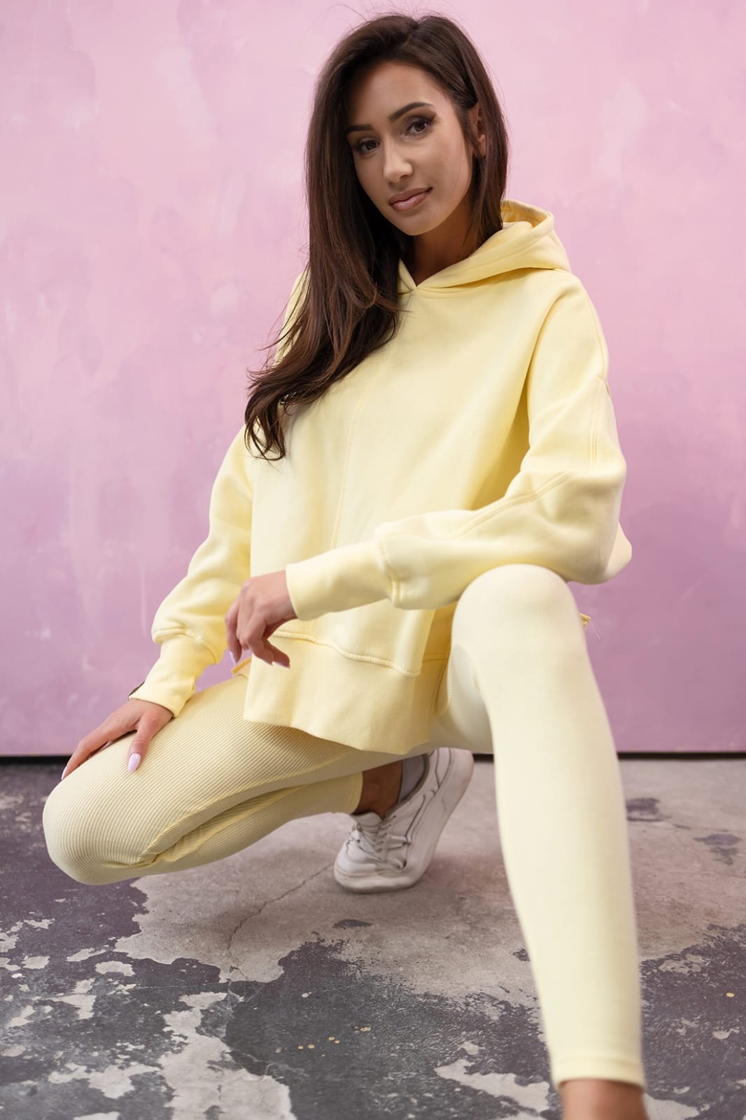Komplet 2-częściowy Bluza nieocieplana z wycięciem na kciuk z kapturem legginsy push up MORE w kolorze Żółtym Lenoshka