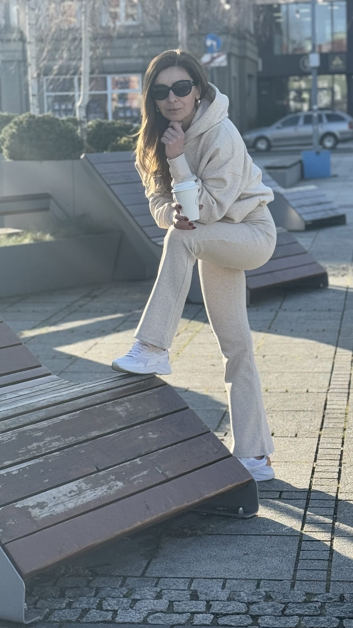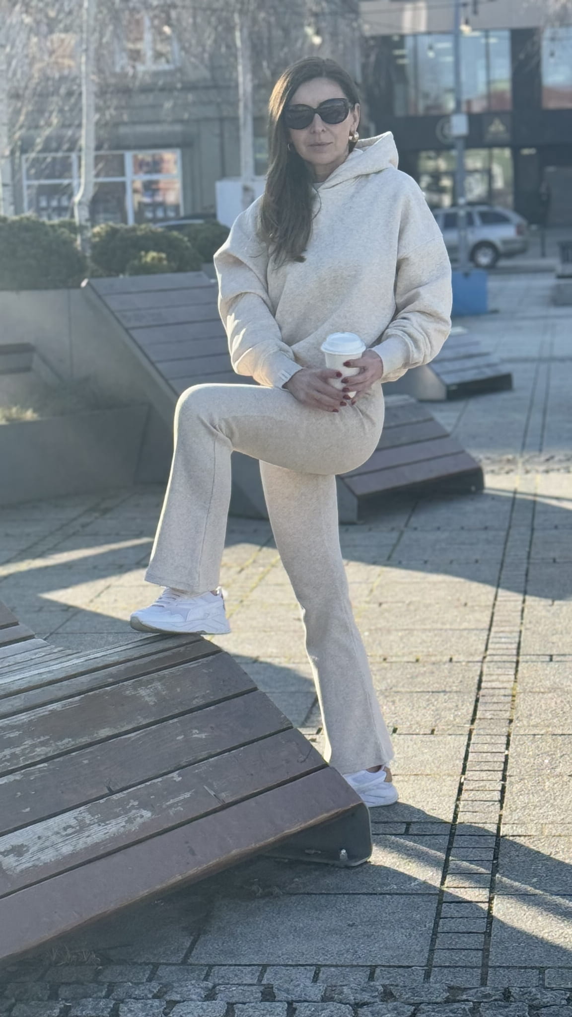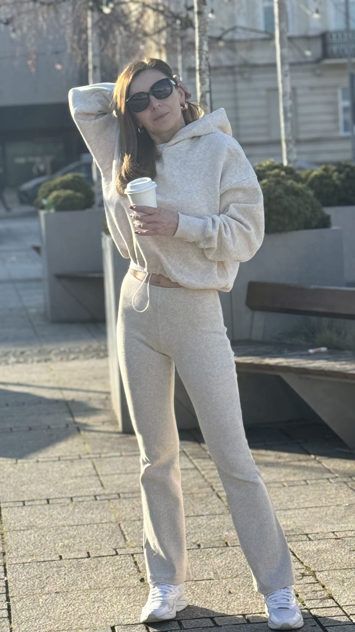 Komplet Bluza ocieplana kaptur z legginsami dzwony Lenoshka Melanż Beż