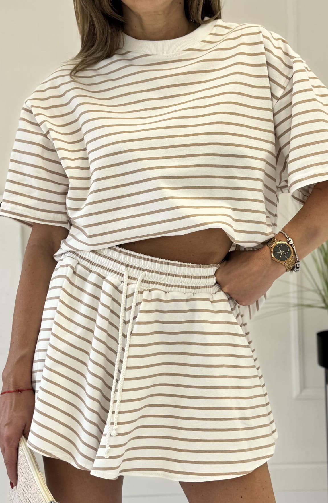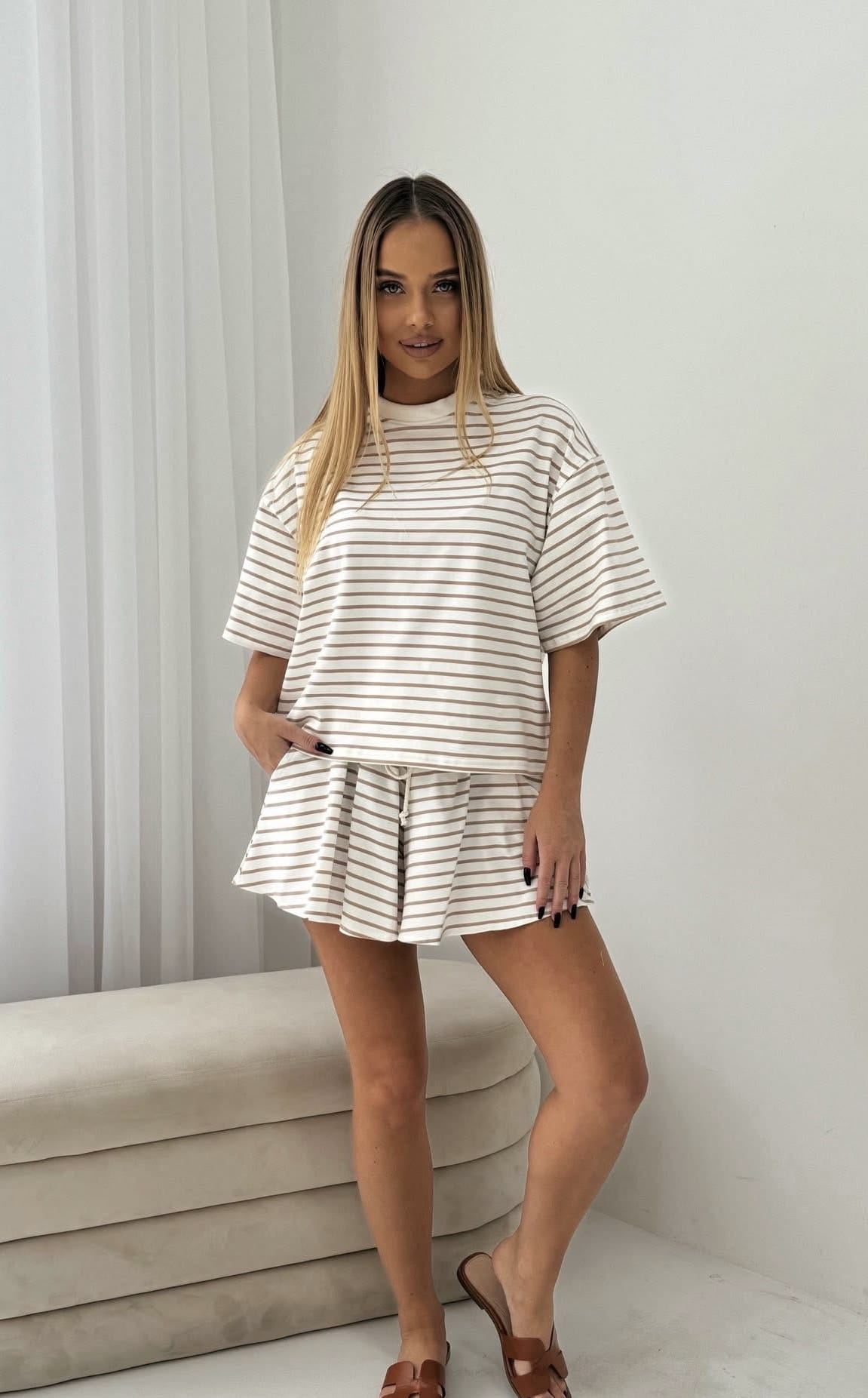 Komplet Haiti Nude Beż T-shirt oversize oraz krótkie spodenki Lenoshka