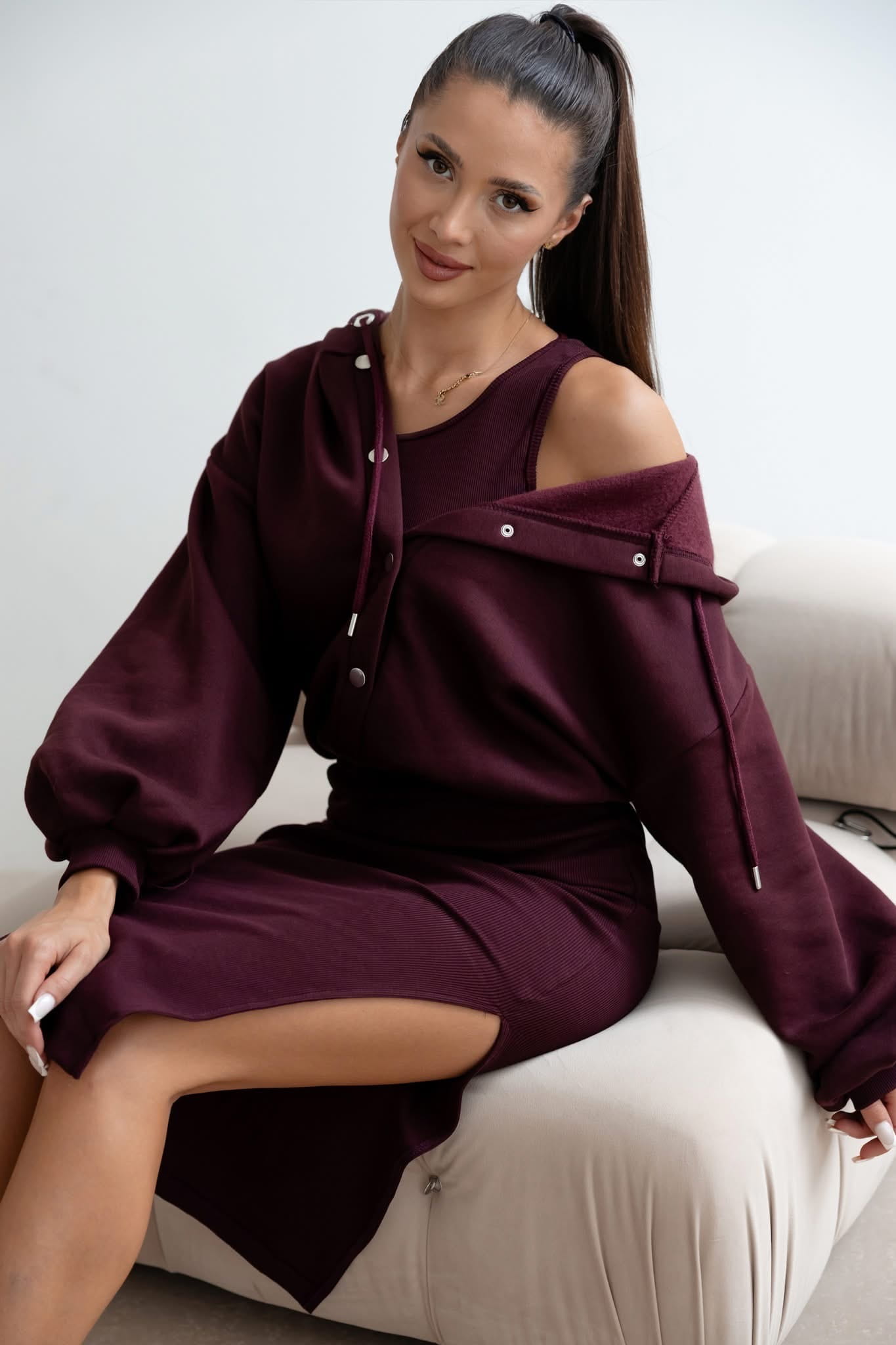 Komplet Lili sukienka prążek bluza oversize Śliwka