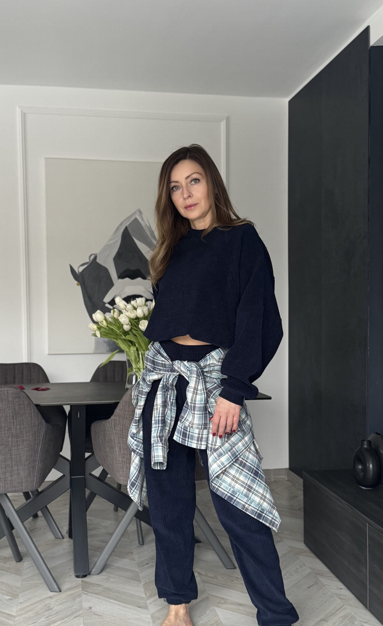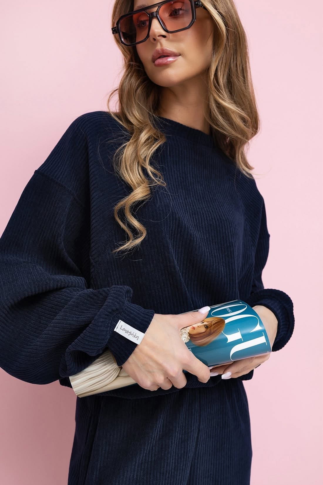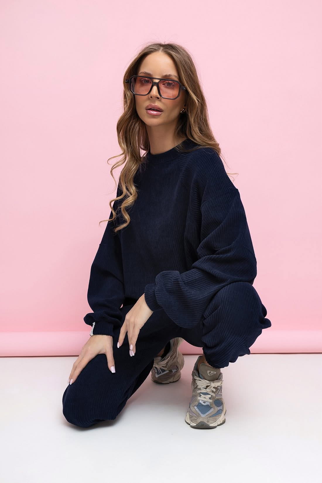 Komplet Wera spodnie dresowe z wysokim stanem oraz bluza z ze ściągaczem w rozmiarze oversize. Bluza typu Basic posiada regulowany troczek . Komplet sztruksowy , mięciutki i bardzo przyjemny .