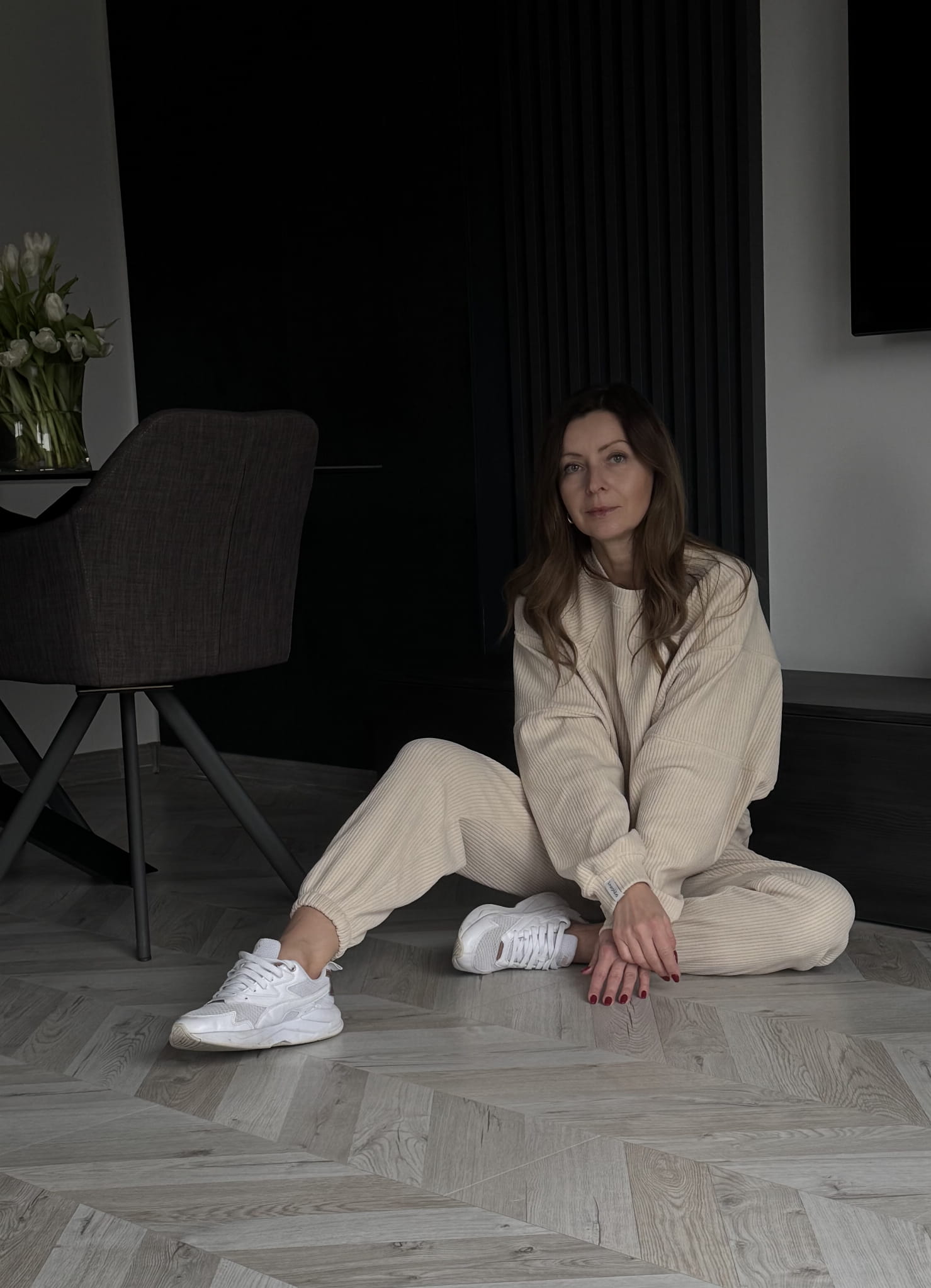 Komplet Wera spodnie dresowe z wysokim stanem oraz bluza z ze ściągaczem w rozmiarze oversize. Bluza typu Basic posiada regulowany troczek . Komplet sztruksowy , mięciutki i bardzo przyjemny .