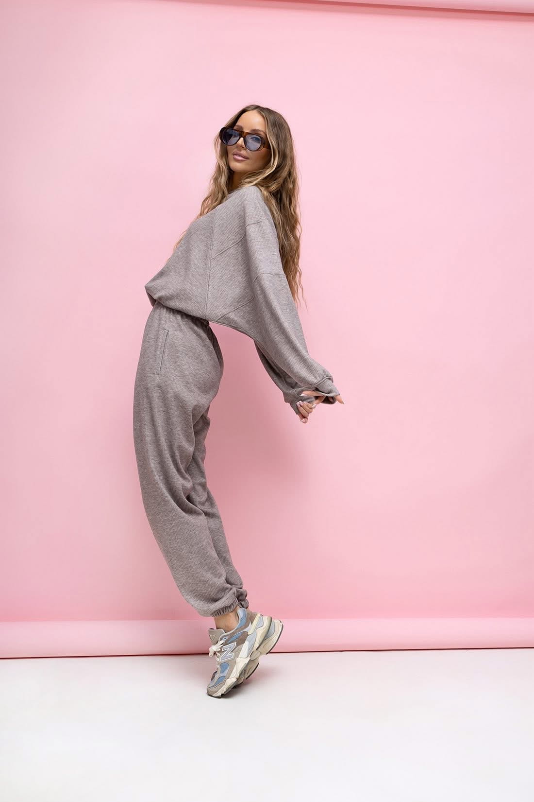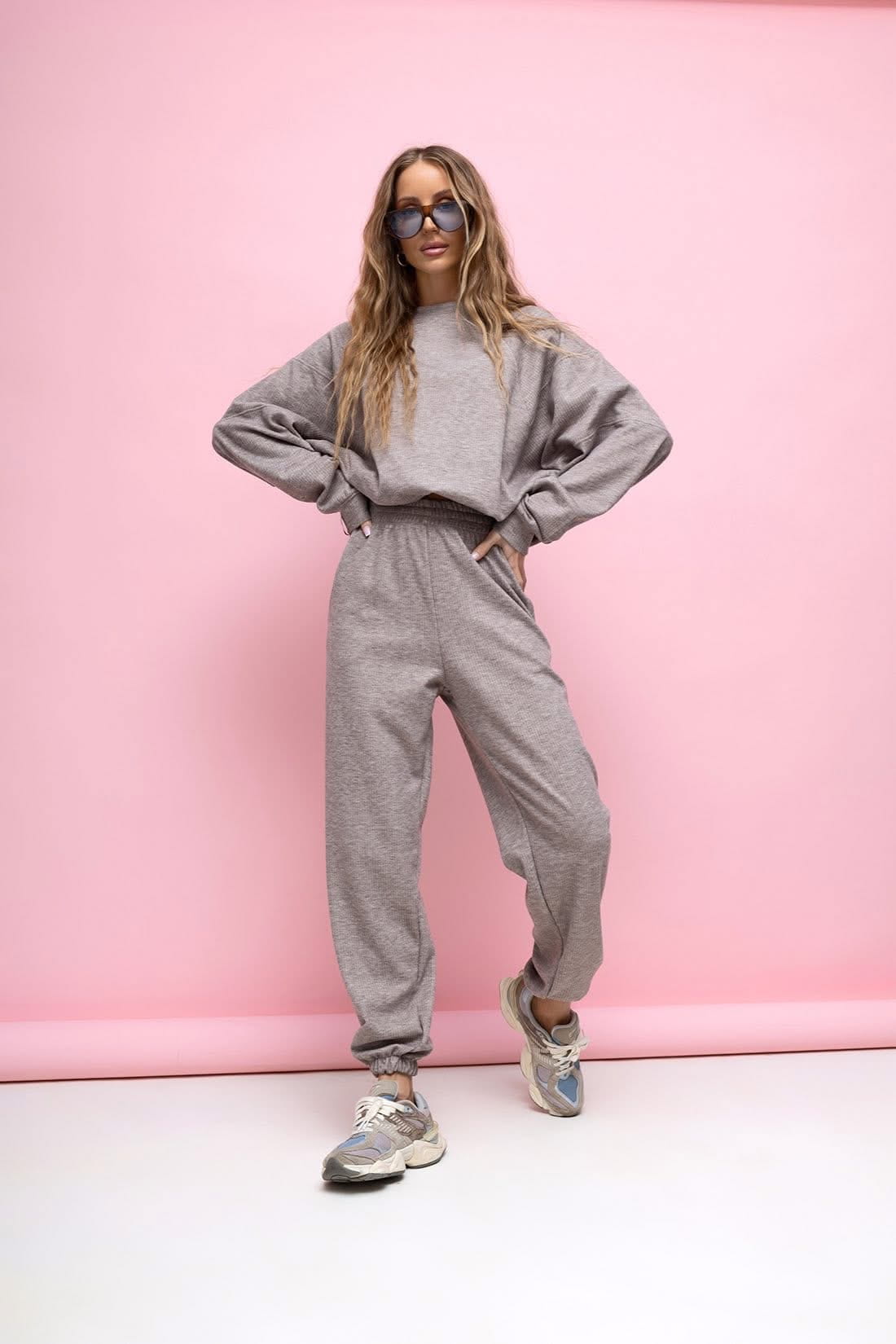 Komplet Wera spodnie dresowe z wysokim stanem oraz bluza z ze ściągaczem w rozmiarze oversize. Bluza typu Basic posiada regulowany troczek . Komplet sztruksowy , mięciutki i bardzo przyjemny .