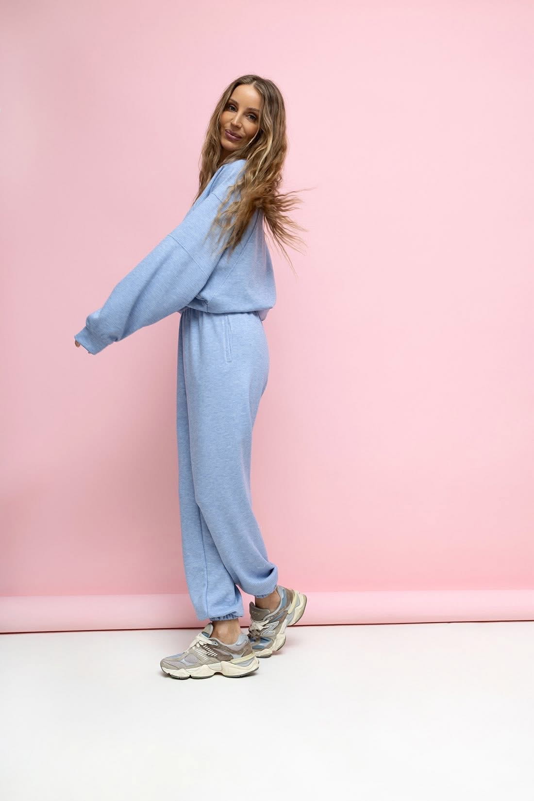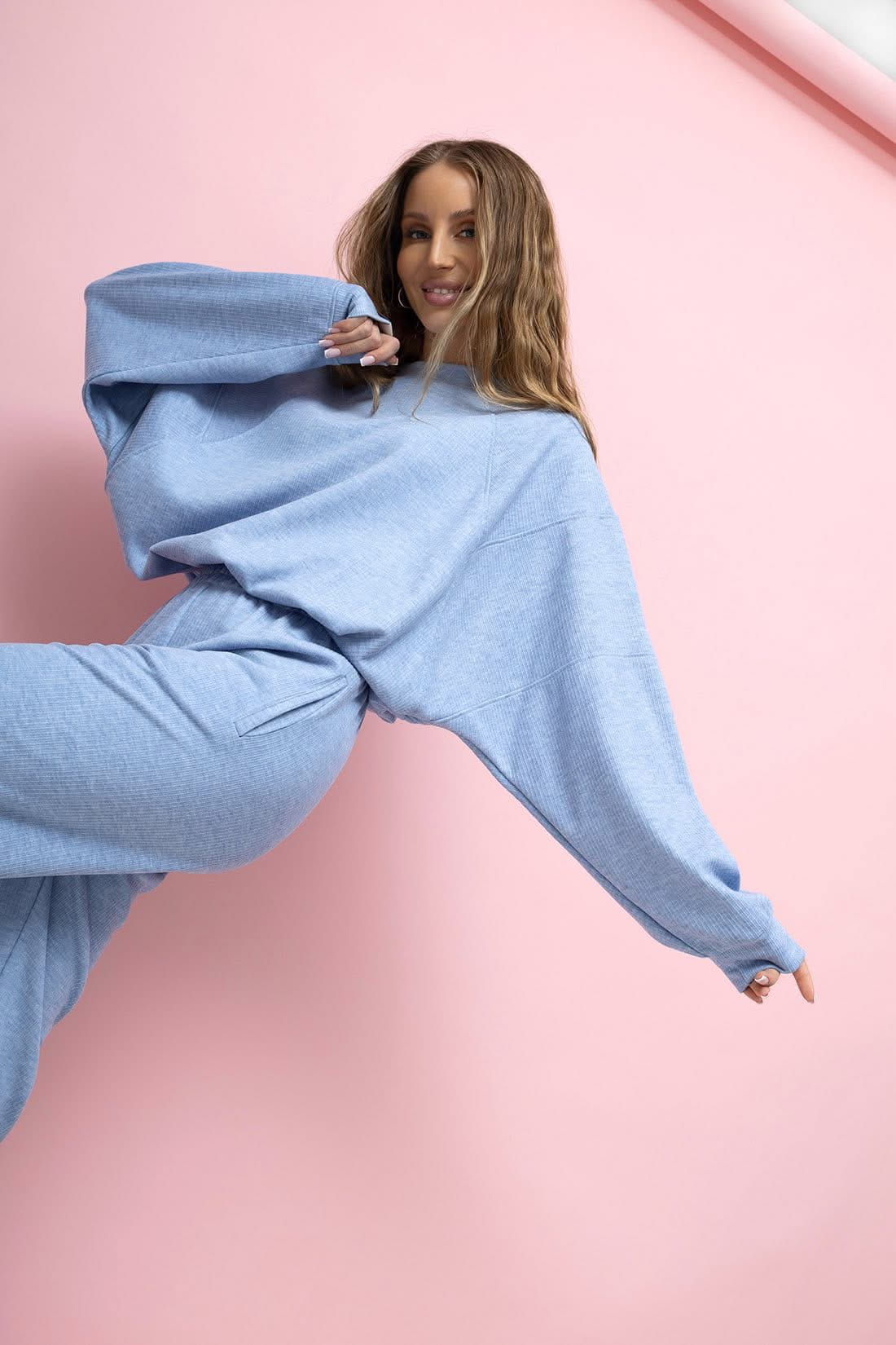 Komplet Wera spodnie dresowe z wysokim stanem oraz bluza z ze ściągaczem w rozmiarze oversize. Bluza typu Basic posiada regulowany troczek . Komplet sztruksowy , mięciutki i bardzo przyjemny .