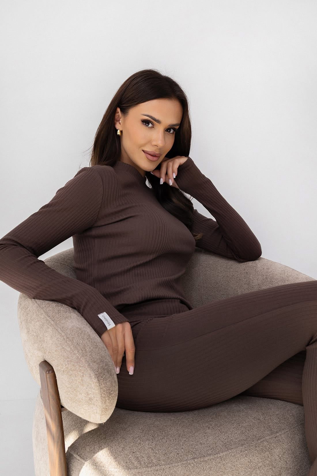Komplet Westa koszulka z długim rękawem Legginsy czekolada Lenoshka