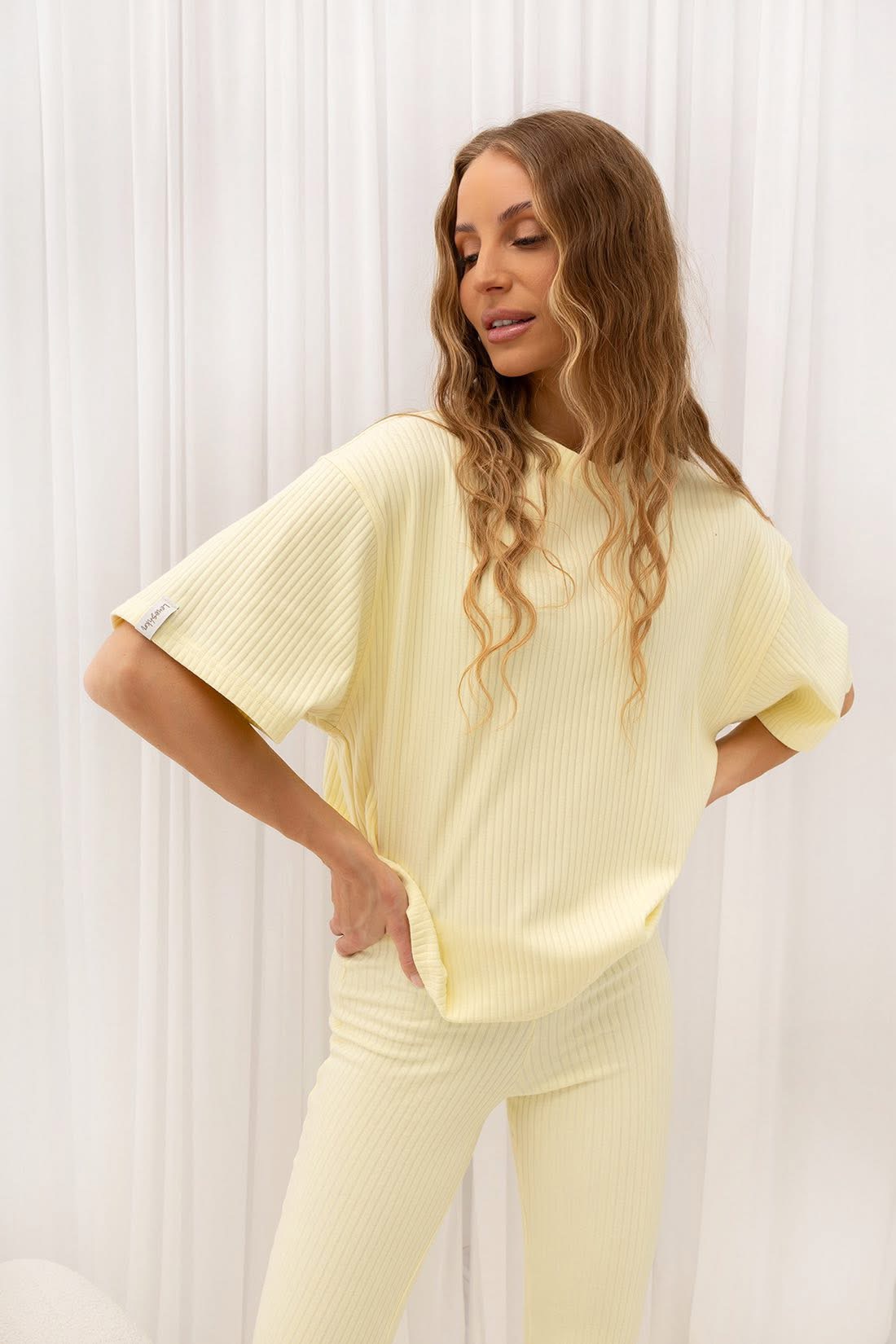 Komplet Westa krótki rękaw legginsy Lenoshka żółty