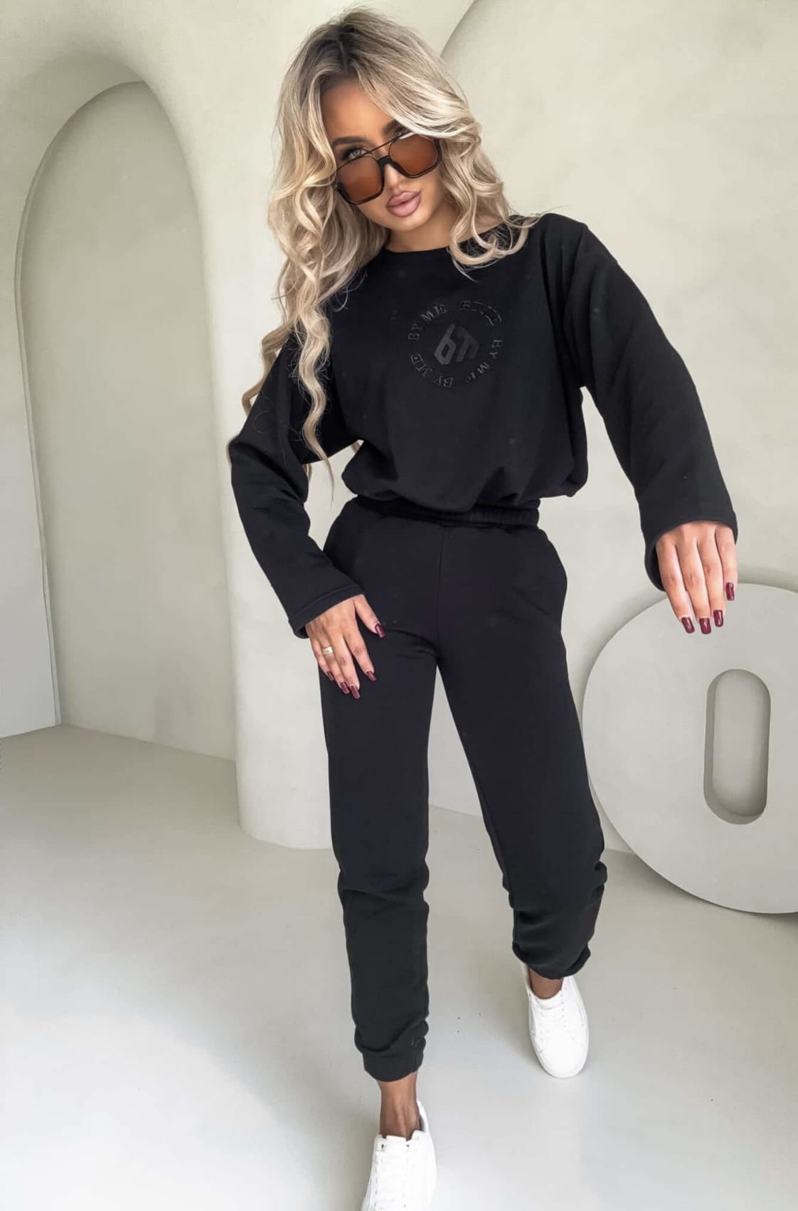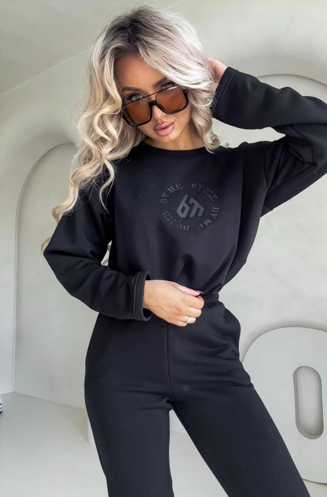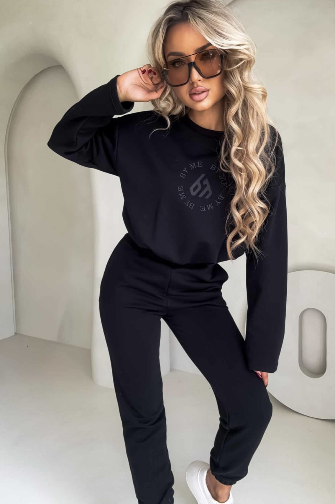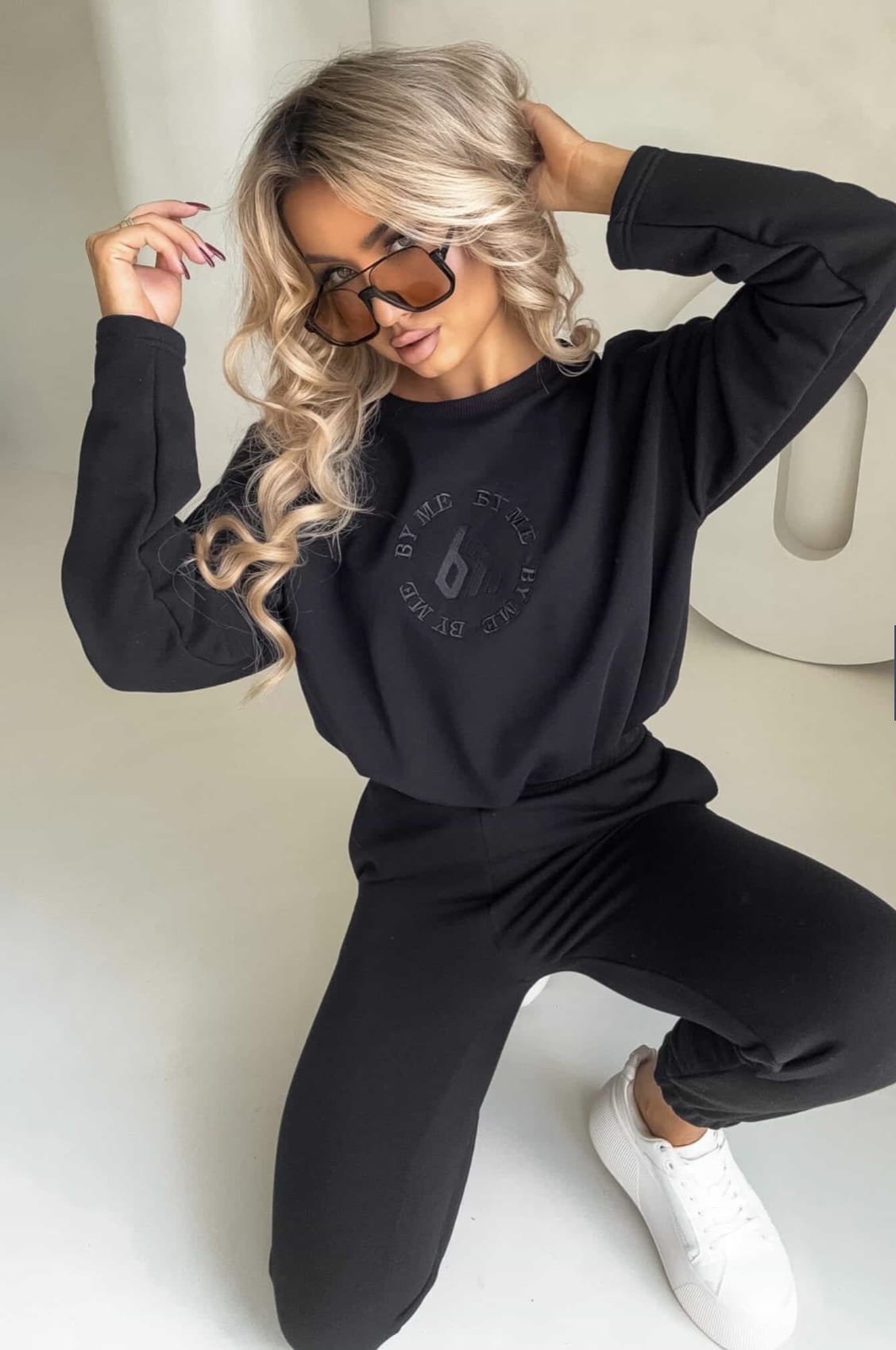 Komplet Louis składający się z bluzy o luźnym kroju, z długim rękawem z troczkiem regulującym długość oraz logowaniem na środku. Spodnie mają gumki na nogawkach i w pasie oraz dwie wbudowane kieszenie.