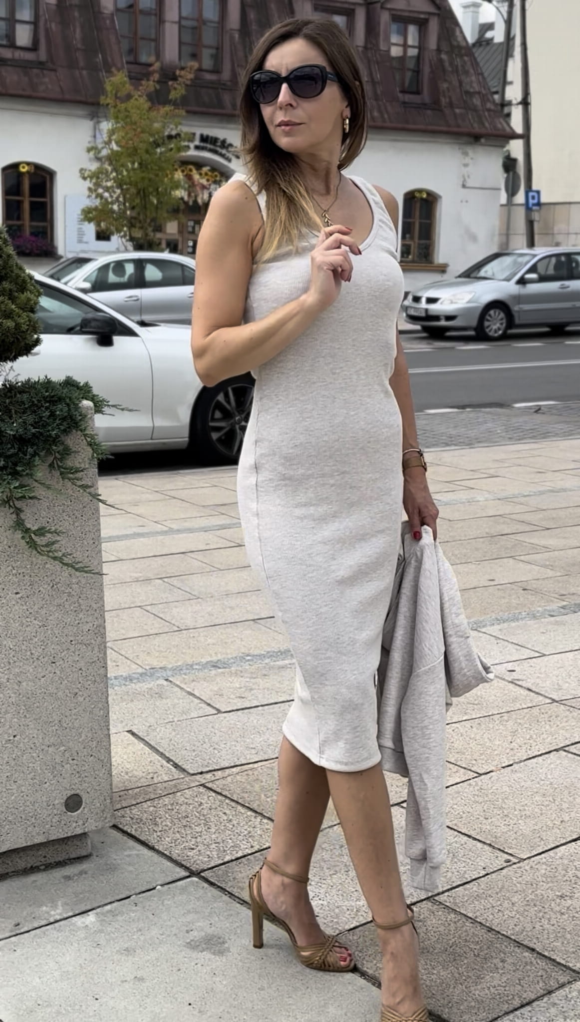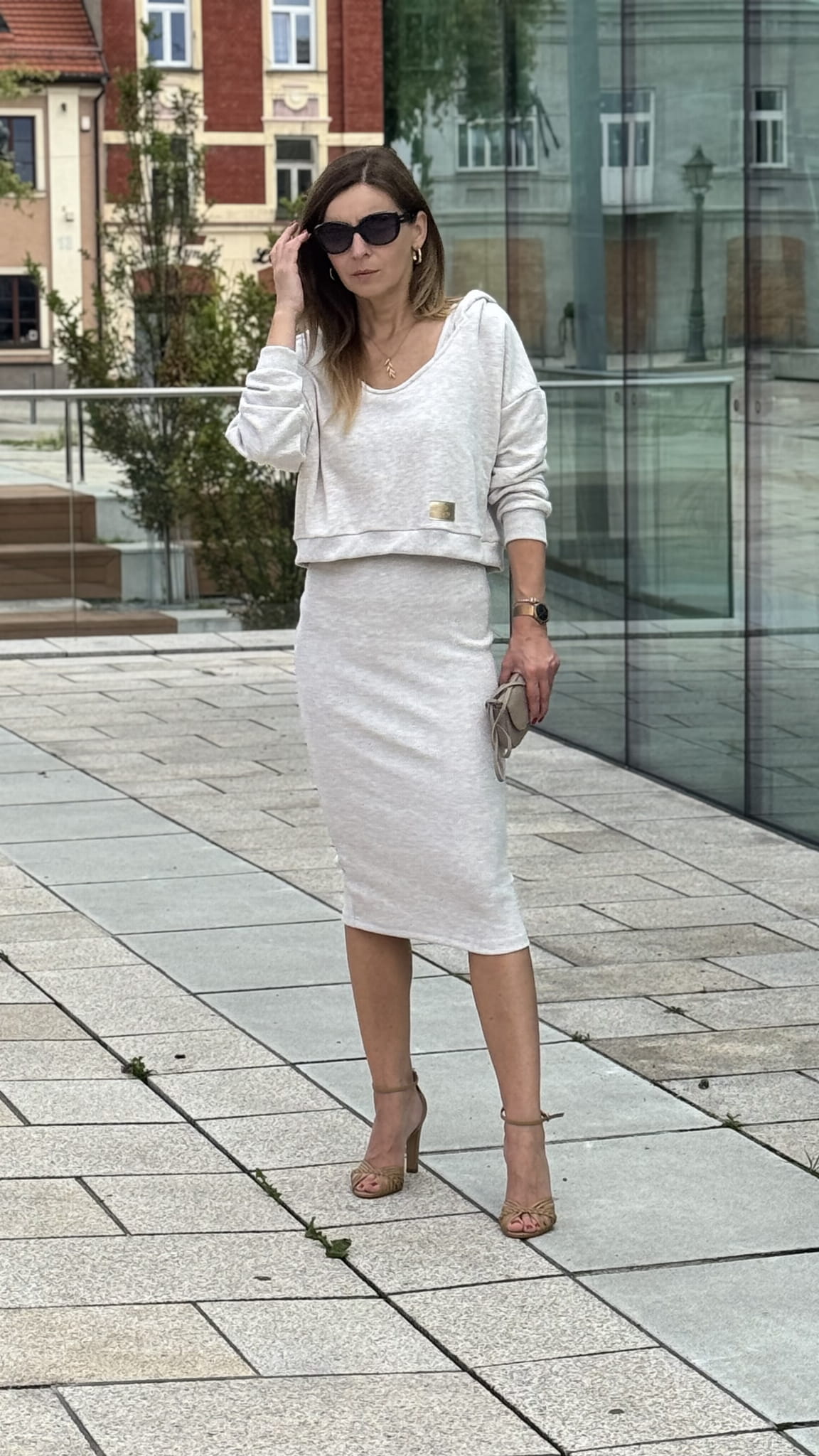 Bluza delikatnie oversizowy fason , z dekoldem w serek .Bawełniany materiał prążkowany z którego wykonana jest sukienka jest bardzo elastyczny , dzięki czemu dopasowuje się do każdej sylwetki od XS do XL .Ten Basicowy comfy set można dowolnie wykorzystywać w różnych wariacjach łączyć ze szpilkami , trampkami , do pracy czy na wyjście . W każdym zestawieniu będzie świetnie wyglądał .