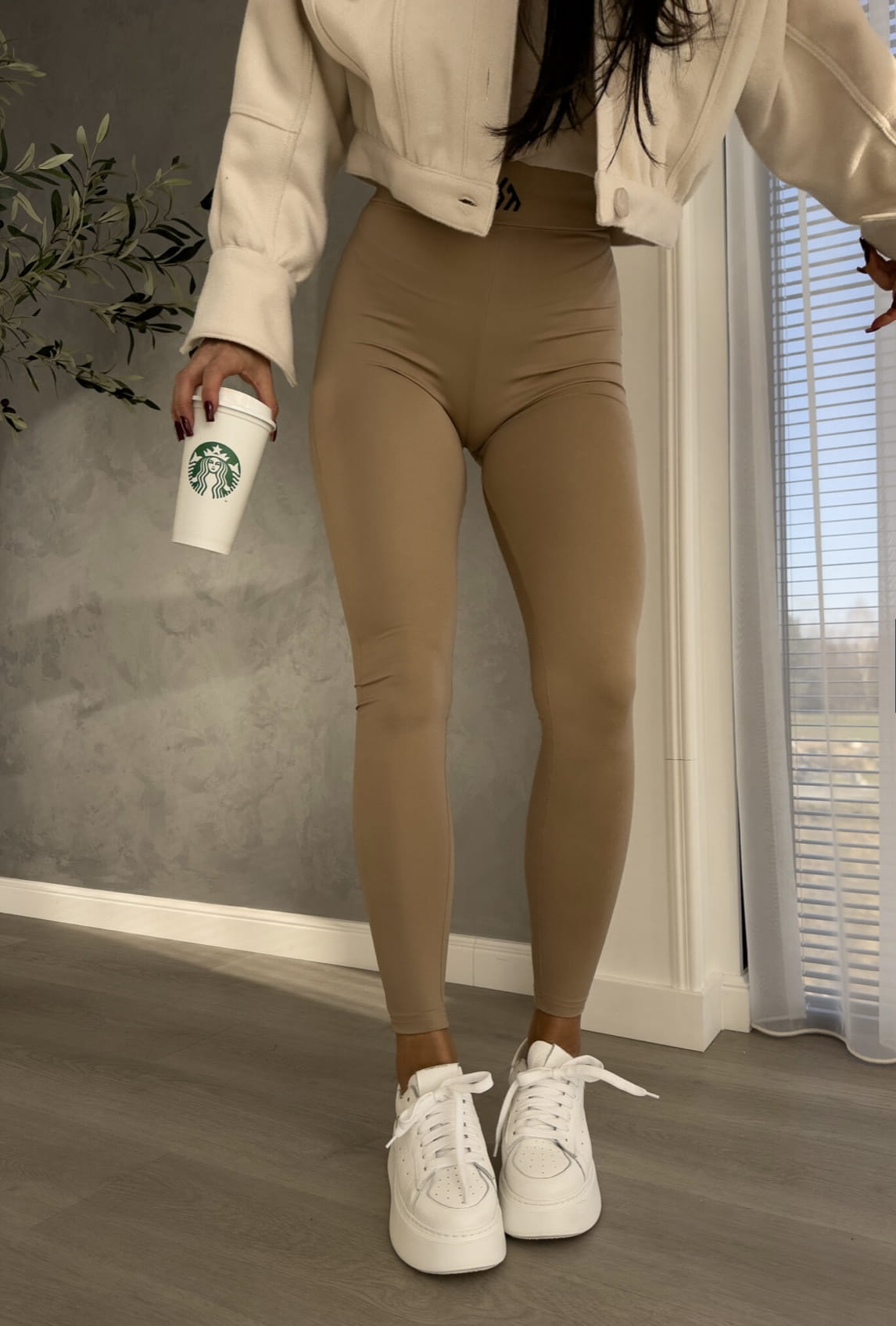 Legginsy Gym z bardzo ciągliwego materiału, logowany pas.