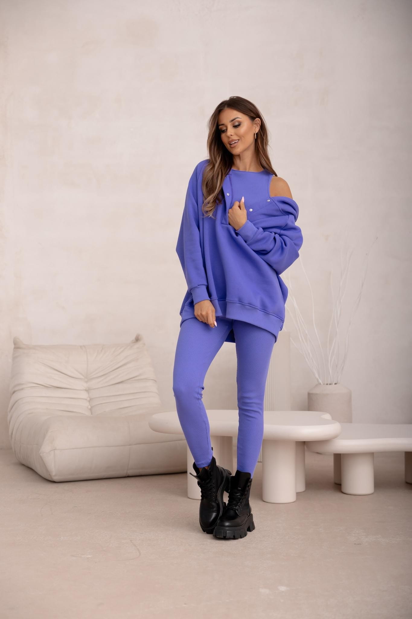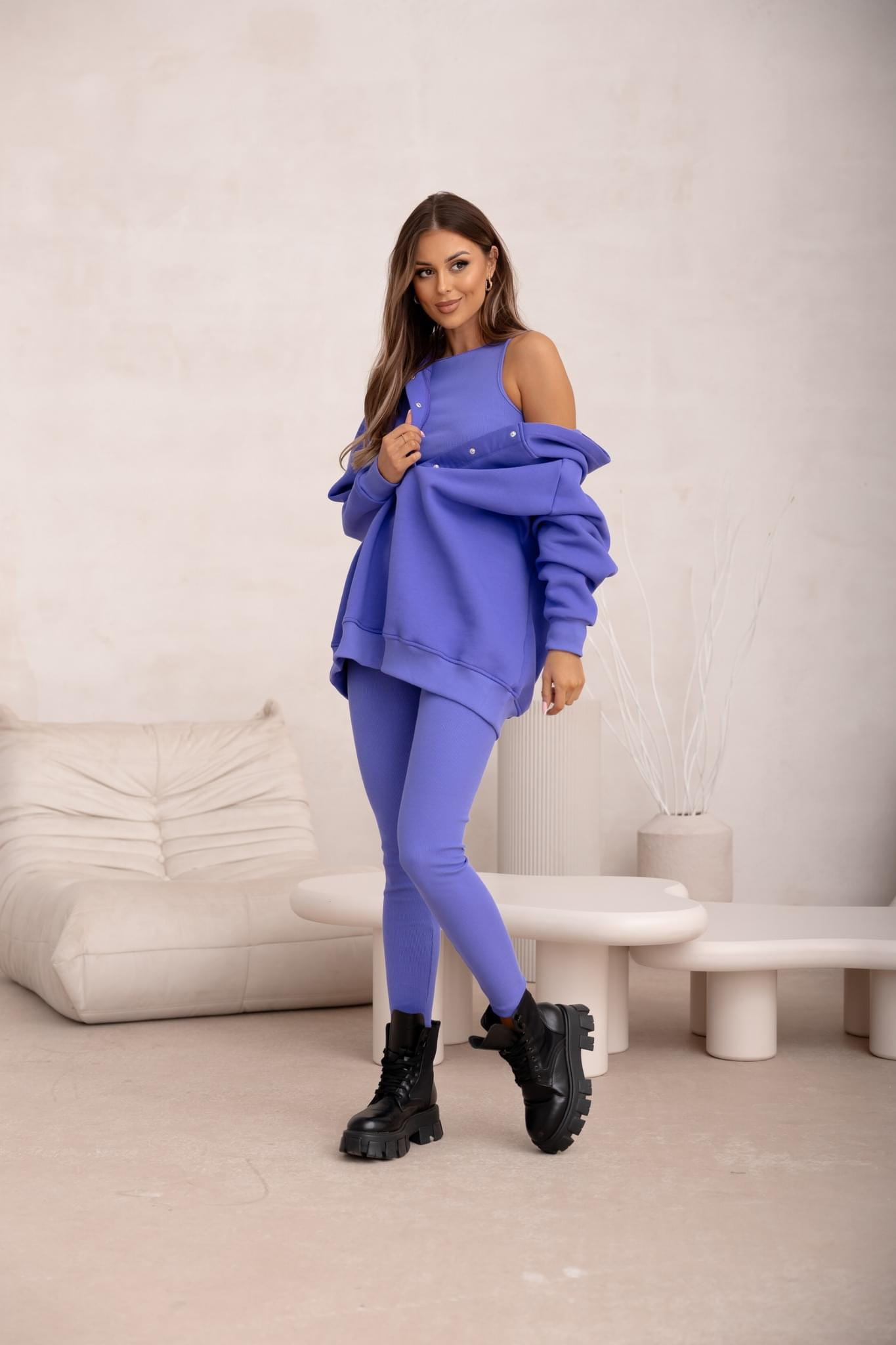 Nowość Komplet dresowy Cotts Fiolet 3 częściowy bluza ocieplane z napami , legginsy prążek oraz top