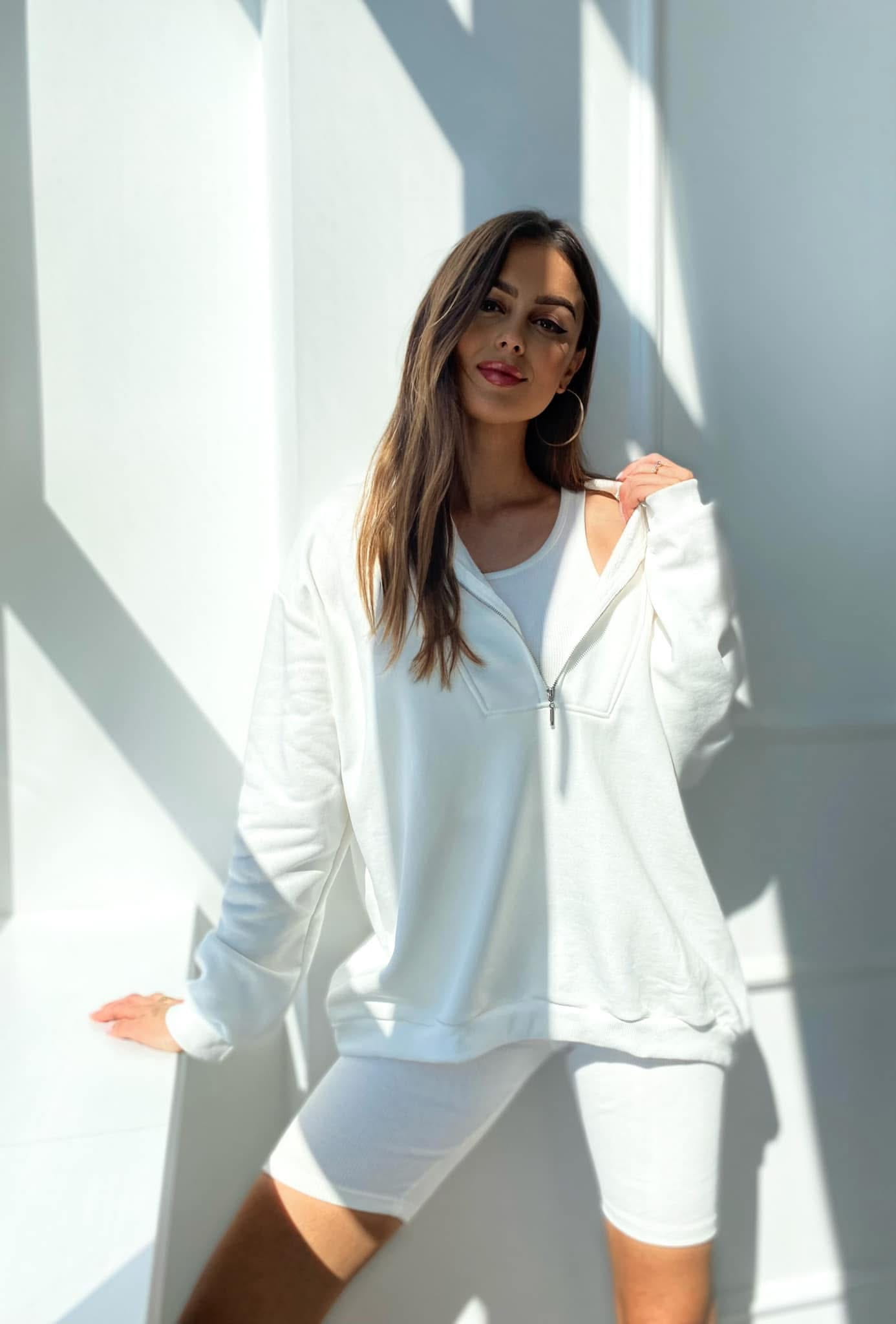 Bluza obszerna oversize nieocieplana z mięsistej bawełny oraz prążkowane kolarki z topem .