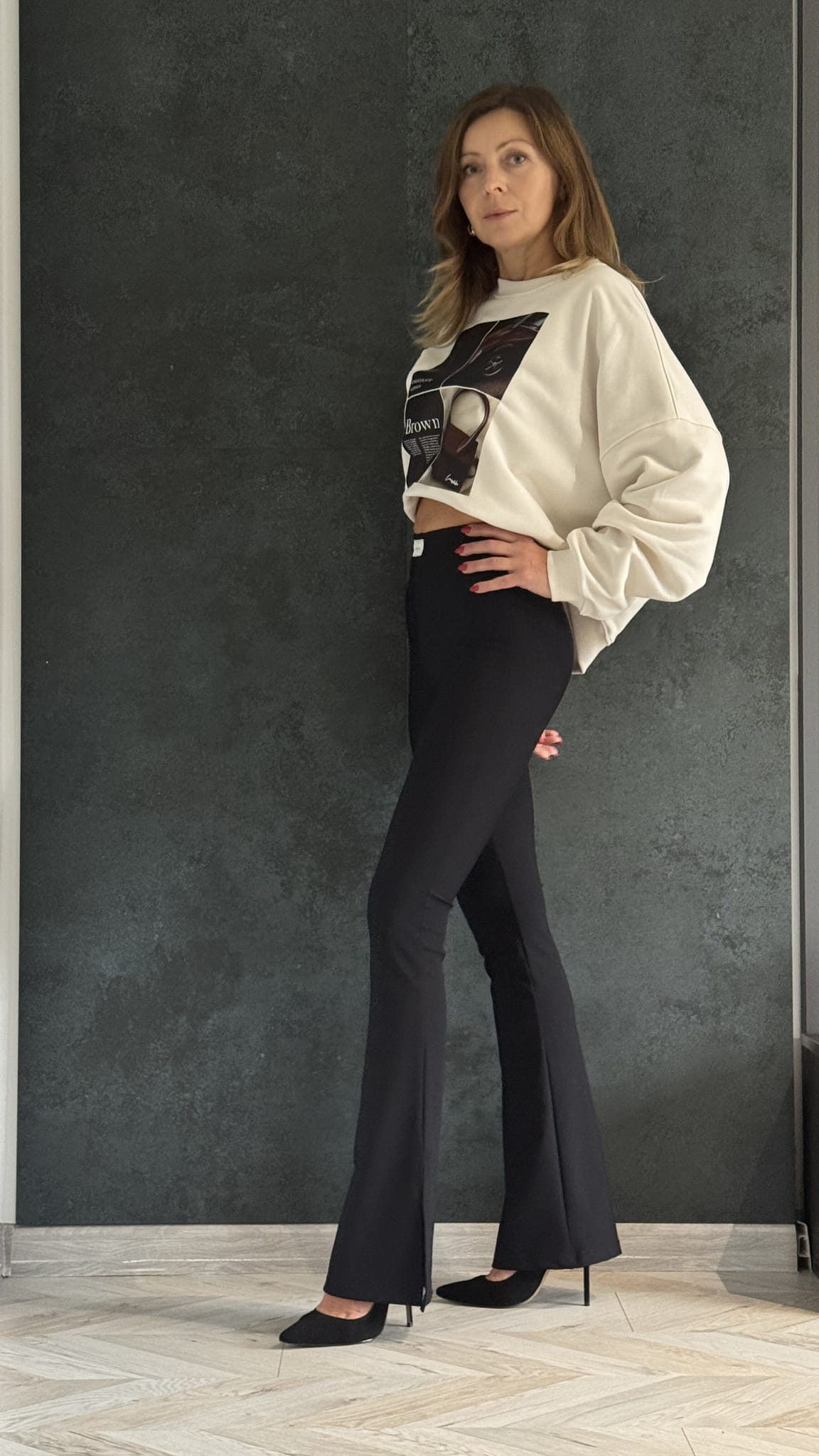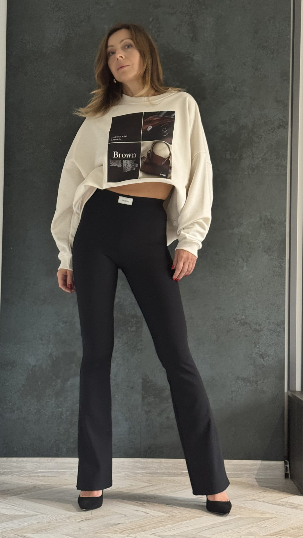 Nowość komplet bluza Basic legginsy dzwony Lenoshka Czarny Kokos Choco