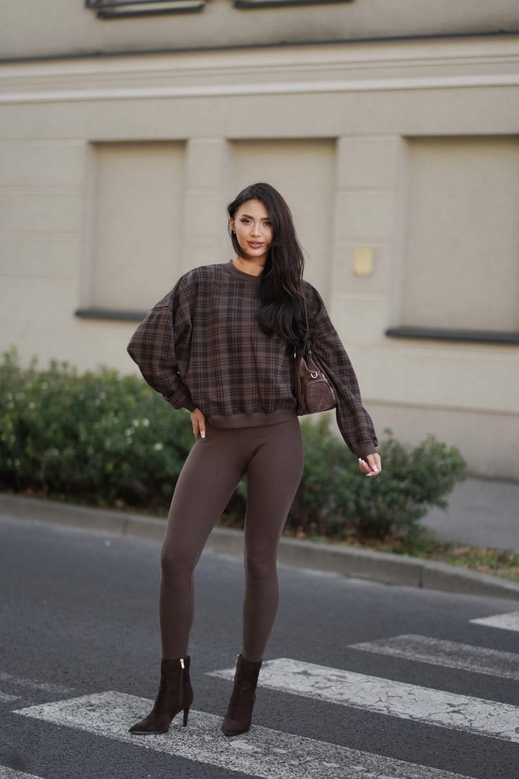 Nowość komplet bluza Basic legginsy push up Czekoladowy Lenoshka Krata