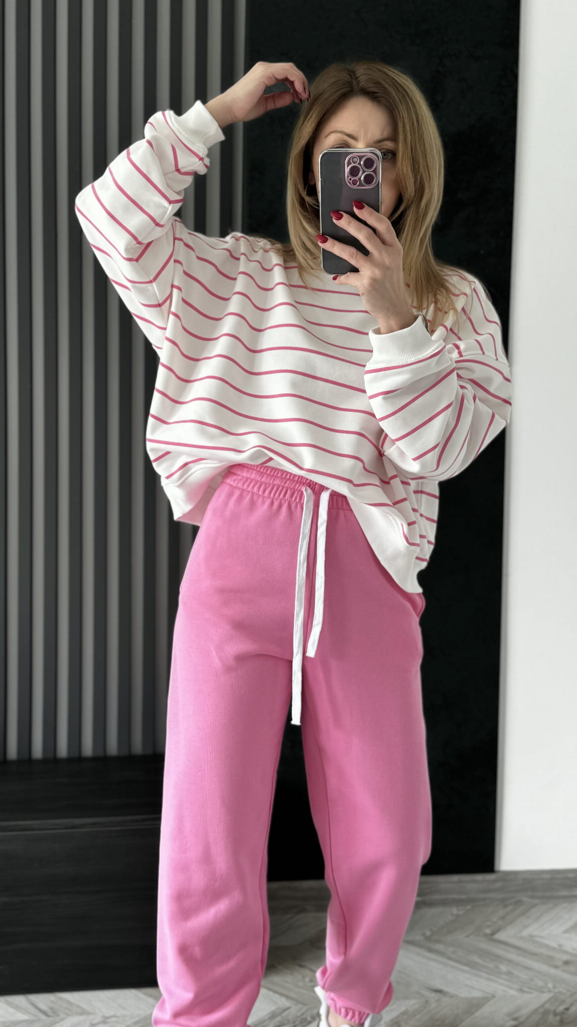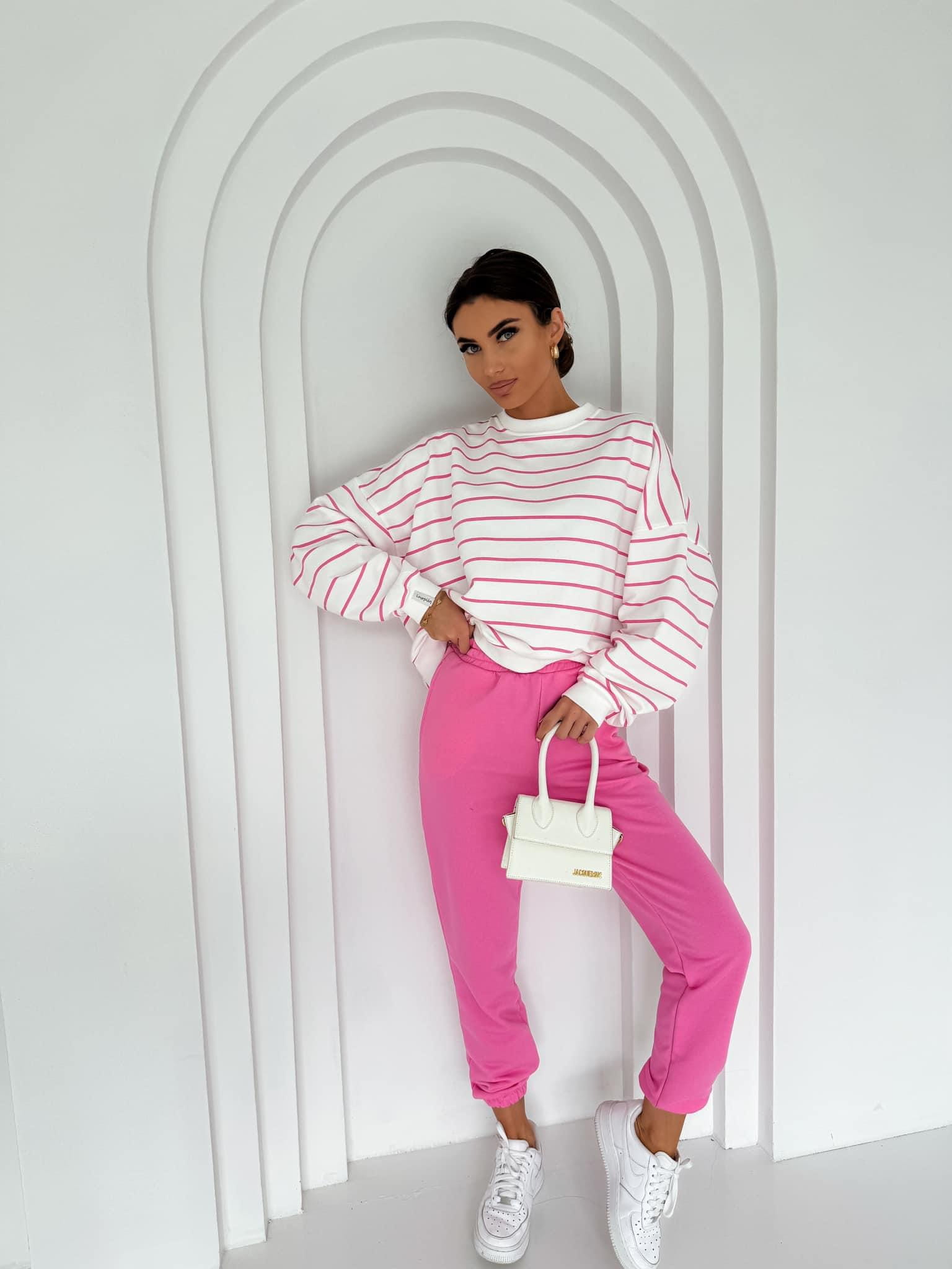 Komplet dresowy bluza oraz spodnie dresowe z wysokim stanem Cocomore Pudrowy Róż