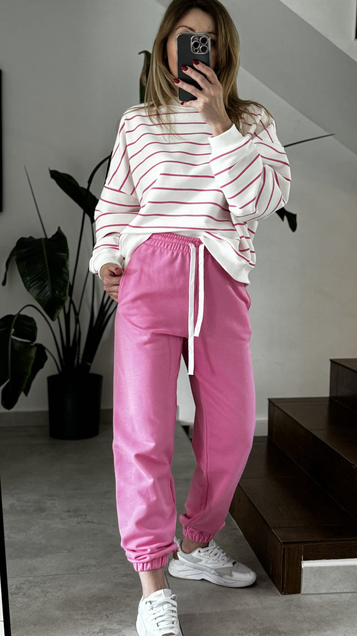 Spodnie dresowe  MESS w cudnym kolorze różu z wysokim stanem.